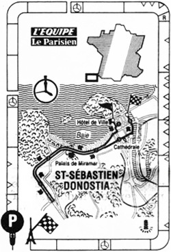 16h10 (ESPAGNE) - San Sebastian (km 0) - Miraconcha (km 1) - Av. de Zumalacarregui (km 3) - sortie N1 San Sebastian (km 3.8) - entrée San Sebastian (km 4) - Calle de San Martin (km 6.2) - Paseo de Los Fueros (km 7.6) -