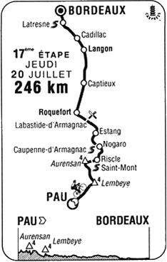 - L'écart diminue et il n'est plus que de 1'30" au km 203 à Cadillac. Thierry Marie résiste néanmoins : 1'20" au km 210, 50" à 30 km du but, 40" à 25 km... ça ne sera pas suffisant et il capitule à l'entrée de Bordeaux,