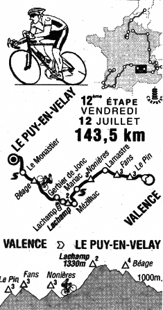 L'échappée n'est plus inquiétée jusqu'à l'arrivée au Puy. Uriarte, longtemps intercalé, se relève dans le final et attend le peloton. Dans le groupe de tête, les démarrages se succèdent en vain : Roux, Gualdi, ensuite Breukink. Au sprint, Pascal Richard règle nettement ses adversaires. Riis conserve le maillot jaune.