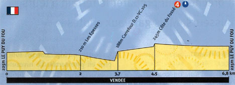 16h10 (Vendée) : Le Puy-du-Fou (km 0) - Les Épesses (km 2) - D11 Carr. D11-Vc105 (km 3.7) - Côte du Fossé (km 4.5-GPM4) - Vc10 Le Puy du Fou (km 6.8).