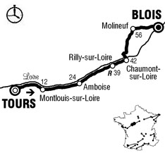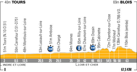 de 14h20 à 16h00 (Indre-et-Loire) : N10 Tours (km 0) - Tours (km 2) - D751 Saint-Pierre-des-Corps (km 3.5) - Montlouis-sur-Loire (km 12.5) - Husseau (km 19.5) - Lussault-sur-Loire (km 25) - Amboise (km 25-chrono) - Chargé (km 29.5) - La Barre (km 34) - Mosnes (km 35) - (Loir-et-Cher) : Rilly-sur-Loire (km 39) - Chaumont-sur-Loire (km 42) - D1 Onzain (km 46-chrono) - D58 Asnières (km 47) - D45 Cabinette (km 49.5) - D45 Carr. D131 (km 54) - D131 Chambon-sur-Cisse (km 54.5) - D135 Molineuf (km 56) - D766 Blois / entrée (km 63) - Blois / Av. du Président Wilson (km 67.5).