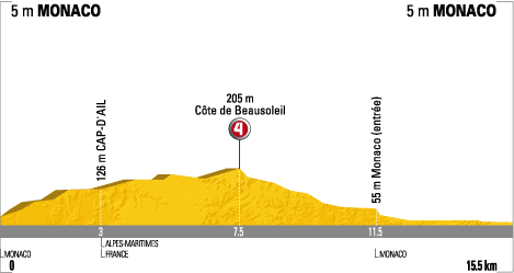 ![]() MONACO > MONACO, 15.5 km CLM samedi 4 juillet 2009 ![]() 16h00 à 19h08 (MONACO) - Monaco / Boulevard Albert 1er (km 0) - Place du casino (km 1), échangeur de Ste Dévote (km 1.5), (FRANCE) - (Alpes-Maritimes) : Cap d'Ail (km 3), La Turbie (km 4), Beausoliel (km 4.5), Ravin de Grima (km 5), Vallon de la Noix (km 6.5), Vallon de la Rousse (km 7), Côte de Beausoleil (km 7.5), Roquebrune Cap-Martin (km 8), (MONACO) - entrée Monaco (km 11.5), Monte-Carlo (km 12), Monaco/Quai Albert 1er (km 15.5). ![]() ![]() ![]() 180 partants Météo : ciel dégagé qui va se couvrir en fin d'étape mais il ne pleuvra pas. Fabian Cancellara, grand favori du jour confirme sa supériorité. Champion olympique 2008, champion du monde 2006 & 2007, vainqueur sur le prologue du Tour 2004 et 2007 (Londres), il endosse le maillot jaune pour la 3ème fois à l'issue de la 1ère étape. Kenny-Robert Van Hummel, de l'équipe Skil, se lance sur le circuit le premier à 16h00. Lance Armstrong parti de bonne heure signe un temps très correct de 20'12" mais on devine qu'il ne sera pas en tête bien longtemps. Le premier chrono significatif est signé du jeune et prometteur coureur allemand Tony Martin en 20'05". Il possédait 12" d'avance sur le septuple vainqueur du Tour au sommet de Beausoleil et il parviendra à en conserver 7" sur la ligne. C'est Lévi Leipheimer de l'équipe Astana qui lance la série des as de la discipline en améliorant le temps de Martin de 3" en 20'02". David Millar ne parviendra pas à améliorer ce chrono (20'20"), Kreuziger se rapprochera dangereusement, à 2" seulement, avec un temps de 20'04". Vient ensuite Andreas Klöden qui se surpasse dans la deuxième partie du circuit pour venir battre Leipheimer de 8" et être le premier à descendre sous les 20 minutes avec un temps de 19'54" ! On attend ensuite Bradley Wiggins. Fera-t-il mieux ? Il ne nous décoit pas et améliore encore le chrono de 3". On pense alors que le seul à pouvoir le battre est Cancellara. Impressionnant, un des meilleurs rouleurs de tous les temps, il fait une démonstration ahurissante dans la deuxième partie de parcours et avec un temps de 19'32" explose le chrono de Wiggins de 18", avec une moyenne supérieure à 47 km/h ! On pensait alors que le podium était joué mais Alberto Contador, auteur de la meilleure ascension de la côte de Beausoleil, parviendra à conserver une petite seconde d'avance sur Bradley Wiggins sur la ligne et finir 2ème du jour, endossant du même coup le maillot à pois. Le meilleur Français est Jérôme Coppel 15ème à 51". ![]() Étape : ![]() 1. Fabian Cancellara (Sui) en 19'32" (moy : 47.611 km/h) 2. Alberto Contador (Esp) à 18" 3. Bradley Wiggins (Gbr) à 19" 4. Andreas Klöden (All) à 22" 5. Cadel Evans (Aus) à 23" 6. Levi Leipheimer (Usa) à 30" 7. Roman Kreuziger (Tch) à 32" 8. Tony Martin (All) à 33" 9. Vincenzo Nibali (Ita) à 37" 11. Gustav-Erik Larsson (Sue) à 41" 12. 13. David Zabriskie (Usa) à 47" 14. David Millar (Gbr) à 48" 15. Jérôme Coppel (Fra) à 51" 16. Sylvain Chavanel (Fra) à 56" 17. Christian Vandevelde (Usa) à 57" 18. Andy Schleck (Lux) à 1'00" 19. Linus Gerdemann (All) à 1'03" 20. Rémi Pauriol (Fra) à 1'05" 21. Carlos Sastre (Esp) à 1'06" 22. Vladimir Karpets (Rus) à 1'07" 23. Alessandro Ballan (Ita) à 1'10" 24. Maxime Monfort (Bel) 25. Jürgen Van den Broeck (Bel) à 1'11" 26. Laurent Lefèvre (Fra) à 1'12" 27. Michael Rogers (Aus) à 1'13" 28. Nicolas Vogondy (Fra) 29. Christophe Riblon (Fra) à 1'14" 30. Juan José Oroz (Esp) 31. Robert Gesink (Hol) à 1'15" 32. Gorka Verdugo (Esp) 33. Sergio Miguel Paulinho (Por) 34. George Hincapie (Usa) à 1'17" 35. Marzio Bruseghin (Ita) 36. William Bonnet (Fra) à 1'19" 37. Danny Pate (Usa) à 1'20" 38. Jens Voigt (All) à 1'22" 39. Kurt-Asle Arvesen (Nor) à 1'24" 40. Rinaldo Nocentini (Ita) 41. Brian Vandborg (Dan) à 1'26" 42. Luis Pasamontes (Esp) 43. Nicolas Roche (Irl) à 1'27" 44. Ryder Hesjedal (Can) 45. David Le Lay (Fra) à 1'28" 46. Stef Clement (Hol) 47. Carlos Barredo (Esp) 48. Heinrich Haussler (All) à 1'29" 49. Sandy Casar (Fra) 50. David Moncoutié (Fra) à 1'30" 51. Jussi Veikkanen (Fin) 52. Jérôme Pineau (Fra) à 1'31" 53. Denis Menchov (Rus) 54. Haimar Zubeldia (Esp) 55. Volodymir Gustov (Ukr) 56. Nicki Sørensen (Dan) à 1'32" 57. Lloyd Mondory (Fra) 58. Oscar Pereiro (Esp) à 1'33" 59. Niki Terpstra (Hol) 60. Alessandro Vanotti (Ita) 61. 62. Serguei Ivanov (Rus) à 1'35" 63. Laurens Ten Dam (Hol) à 1'36" 64. Rui Alberto Costa (Por) 65. Sébastien Rosseler (Bel) 66. Pierrick Fedrigo (Fra) 67. Fränk Schleck (Lux) 68. Jérémy Roy (Fra) 69. Igor Anton (Esp) à 1'38" 70. Peter Velits (Svq) 71. Mikhail Ignatiev (Rus) 72. Johannes Fröhlinger (All) à 1'39" 73. Markus Fothen (All) 74. Maxime Bouet (Fra) 75. Simon Spilak (Slo) à 1'40" 76. Rigoberto Uran (Col) à 1'42" 77. Tyler Farrar (Usa) 78. Christian Knees (All) à 1'43" 79. Jürgen Van de Walle (Bel) 80. Fabio Sabatini (Ita) à 1'44" 81. Daniele Bennati (Ita) 82. Amets Txurruka (Esp) à 1'45" 83. Stéphane Goubert (Fra) 84. Saïd Haddou (Fra) 85. José Ivan Gutierrez (Esp) à 1'47" 86. José Joaquin Rojas (Esp) 87. Iñigo Cuesta (Esp) à 1'48" 88. Juan Manuel Garate (Esp) 89. Luis Leon Sanchez (Esp) 90. Stuart O'Grady (Aus) 91. Cyril Dessel (Fra) à 1'49" 92. Charles Wegelius (Gbr) 93. Sébastien Minard (Fra) 94. Brett Lancaster (Aus) à 1'50" 95. Amaël Moinard (Fra) 96. Thierry Hupond (Fra) 97. Joost Posthuma (Hol) 98. Bert Grabsch (All) à 1'51" 99. Geoffroy Lequatre (Fra) à 1'53" 100. Christophe Kern (Fra) à 1'54" 101. Filippo Pozzato (Ita) 102. Matteo Tosatto (Ita) 103. Bernhard Eisel (Aut) 104. Mickaël Delage (Fra) à 1'55" 105. Grischa Niermann (All) 106. Martijn Maaskant (Hol) 107. Vladimir Efimkin (Rus) 108. David Arroyo (Esp) à 1'56" 109. Kim Kirchen (Lux) à 1'57" 110. Pierre Rolland (Fra) 111. Hayden Roulston (Nzl) 112. Christophe Moreau (Fra) 113. Hubert Dupont (Fra) 114. Tom Boonen (Bel) à 1'58" 11