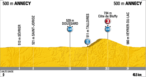 ![]() jeudi 23 juillet 2009 ![]() 11h10 à 16h47 (Haute-Savoie) : Annecy / Place de l'Hôtel de Ville (km 0) - Letraz-Chuguet (km 3) - Le Crêt (km 3.5) - Sevrier (km 4) - Le Brouillet (km 6.5) - Saint-Jorioz (km 8) - Duingt (km 11.5) - Bredannaz (km 13.5) - Bout-du-Lac (km 16) - Doussard (km 18) - Verthier (km 18.5) - Glières (km 20) - Balmette (km 22) - Angon (km 23) - Talloires (km 25) - Côte de Bluffy (km 28.5-GPM3) - Bluffy (km 29.5) - Veyrier-du-Lac (km 34) - Chavoire (km 36.5) - Annecy-le-Vieux (km 37) - entrée Annecy(km 39) - Annecy / Av. d'Albigny (km 40.5). ![]() ![]() ![]() Météo : éclaircies, 29° 158 partants. 11h10 : départs toutes les deux minutes, 15h38 : départ toutes les 3' à partir de Roche (24ème au C.G.). Temps intermédiaires : - km 18 : Contador en 20'02", Wiggins à 18", Ignatiev à 19", Armstrong à 27", Cancellara & Klöden à 37", ..., A. Schleck à 44", ..., Van de Velde à 55", Chavanel à 56", Moreau à 57", ..., F. Schleck à 1'02", ... Nibali à 1'09", ... Evans à 1'26", ..., Sastre à 1'47" etc. - km 25 : Ignatiev en 28'22", Contador à 3", Wiggins à 10", Larsson à 17", L.L. Sanchez & Cancellara à 18", ..., Moreau à 26", Armstrong à 29", Klöden à 31", ..., Van de Velde à 57", ..., A. Schleck à 1'02", ..., Evans à 1'09", ..., Nibali à 1'21", ... F. Schleck à 1'23", Sastre à 1'55" etc. - km 28.5 (côte de Bluffy) : Contador en 36'50", Wiggins à 30", Ignatiev à 35", Moreau à 42", L.L. Sanchez à 43", Cancellara & Klöden à 46", ..., Evans à 1'02", ..., Armstrong à 1'12", A. Schleck à 1'17", ..., Van de Velde à 1'36", ..., Nibali à 1'41", F. Schleck à 1'47", ... Sastre à 2'52" etc. - km 37 : Contador en 45'07", Cancellara à 15", Igniatiev à 24", Larsson à 41", Wiggins à 42" etc. Contador part vite et assure son succès dans la côte de Bluffy où il creuse l'écart sauf sur Evans qui la monte encore plus vite. Dans la descente et le final, plusieurs coureurs terminent fort, notamment Cancellara (2ème à 3", qui reprend 43" en une douzaine de kilomètres), Ignatiev ou David Millar. Alberto Contador remporte ce contre-la-montre, ce qui constitue quand même une surprise. Armstrong monte à la 3ème place du classement général mais quatre coureurs sont en moins d'une minute : Armstrong, Wiggins, Klöden & F. Schleck. Le Mont Ventoux va être décisif pour le podium final. ![]() Étape : ![]() 1. Alberto Contador (Esp) en 48'30" (moy : 50.103 km/h) 2. Fabian Cancellara (Sui) à 3" 3. Mikhail Ignatiev (Rus) à 15" 4. Gustav-Erik Larsson (Sue) à 33" 5. David Millar (Gbr) à 41" 6. Bradley Wiggins (Gbr) à 43" 7. Luis Leon Sanchez (Esp) à 44"" 8. Christophe Moreau (Fra) à 45" 9. Andreas Klöden (All) à 54" 10. David Zabriskie (Usa) à 1'02" 11. Tony Martin (All) à 1'04" 12. Cadel Evans (Aus) à 1'14" 13. Maxime Monfort (Bel) à 1'19" 14. Sylvain Chavanel (Fra) à 1'20" 15. Vladimir Karpets (Rus) à 1'28" 17. Stef Clement (Hol) à 1'37" 18. Bert Grabsch (All) à 1'38" 19. Michael Rogers (Aus) à 1'38" 20. Kim Kirchen (Lux) à 1'42" 21. Andy Schleck (Lux) à 1'45" 22. 23. Marzio Bruseghin (Ita) à 2'00" 24. Christian Vandevelde (Usa) à 2'00" 25. Joost Posthuma (Hol) à 2'05" 26. Vincenzo Nibali (Ita) à 2'06" 27. Linus Gerdemann (All) à 2'11" 28. Peter Velits (Svq) à 2'13" 29. Niki Terpstra (Hol) à 2'14" 30. Sebastian Lang (All) à 2'17" 31. Brian Vandborg (Dan) à 2'18" 32. Jürgen Van den Broeck (Bel) à 2'26" 33. Markus Fothen (All) à 2'32" 34. George Hincapie (Usa) à 2'34" 35. Fränk Schleck (Lux) à 2'34" 36. Luis Pasamontes (Esp) à 2'36" 37. Christophe Riblon (Fra) à 2'36" 38. Stijn Devolder (Bel) à 2'37" 39. Yaroslav Popovych (Ukr) à 2'40" 40. Sandy Casar (Fra) à 2'45" 41. José Ivan Gutierrez (Esp) à 2'46" 42. Heinrich Haussler (All) à 2'50" 43. Ryder Hesjedal (Can) à 2'51" 44. Juan Manuel Garate (Esp) à 2'52" 45. Laurent Lefèvre (Fra) à 2'57" 46. Martijn Maaskant (Hol) à 3'00" 47. Stéphane Augé (Fra) à 3'03" 48. Grischa Niermann (All) à 3'07" 49. Sébastien Rosseler (Bel) à 3'09" 50. Nicolas Roche (Irl) à 3'11" 51. Haimar Zubeldia (Esp) à 3'11" 52. Aliaksandr Kuschynski (Blr) à 3'12" 53. Roman Kreuziger (Tch) à 3'16" 54. Stuart O'Grady (Aus) à 3'21" 55. Christophe Le Mével (Fra) à 3'22" 56. Pierrick Fedrigo (Fra) à 3'23" 57. Koen De Kort (Hol) à 3'27" 58. Maxime Bouet (Fra) à 3'29" 59. Brett Lancaster (Aus) à 3'32" 60. William Bonnet (Fra) à 3'33" 61. Nicki Sørensen (Dan) à 3'35" 62. Marcin Sapa (Pol) à 3'36" 63. Christian Knees (All) à 3'36" 64. Simon Geschke (All) à 3'36" 65. Mickaël Delage (Fra) à 3'37" 66. Chris-Anker Sørensen (Dan) à 3'38" 67. Simon Spilak (Slo) à 3'40" 68. Yury Trofimov (Rus) à 3'43" 69. Geoffroy Lequatre (Fra) à 3'44" 70. Carlos Sastre (Esp) à 3'47" 71. Amaël Moinard (Fra) à 3'48" 72. Rinaldo Nocentini (Ita) à 3'49" 73. Jussi Veikkanen (Fin) à 3'54" 74. Rémi Pauriol (Fra) à 3'59" 75. Gerald Ciolek (All) à 4'07" 76. Carlos Barredo (Esp) à 4'08" 77. Brice Feillu (Fra) à 4'08" 78. Fumiyuki Beppu (Jap) à 4'11" 79. Denis Menchov (Rus) à 4'12" 80. Nikolai Trussov (Rus) à 4'15" 81. Matthew Lloyd (Aus) à 4'16" 82. Stéphane Goubert (Fra) à 4'18" 83. Anthony Geslin (Fra) à 4'21" 84. Johannes Fröhlinger (All) à 4'25" 85. Iñigo Cuesta (Esp) à 4'26" 86. Steven De Jongh (Hol) à 4'29" 87. Igor Anton (Esp) à 4'31" 88. Hubert Dupont (Fra) à 4'32" 89. Hayden Roulston (Nzl) à 4'33" 90. José Luis Arrieta (Esp) à 4'36" 92. Laurens Ten Dam (Hol) à 4'39" 93. Albert Timmer (Hol) à 4'39" 94. Alessandro Ballan (Ita) à 4'40" 95. Arnaud Coyot (Fra) à 4'40" 96. Gorka Verdugo (Esp) à 4'41" 97. Egoi Martinez (Esp) à 4'43" 98. Jérémy Roy (Fra) à 4'45" 99. Cyril Lemoine (Fra) à 4'46" 100. Leonardo Duque (Col) à 4'47" 101. Daniele Bennati (Ita) à 4'47" 102. Sébastien Minard (Fra) à 4'47" 103. Pierre Rolland (Fra) à 4'50" 104. Mauro Santambrogio (Ita) à 4'53" 105. Thierry Hupond (Fra) à 4'54" 106. Greg Van Avermaet (Bel) à 4'55" 107.