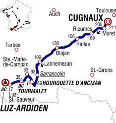![]() jeudi 14 juillet 2011 >(Haute-Garonne) : Cugnaux (km 0) - Muret (km 5.5) - Denton D3 (km 10) - Saint-Clar-de-Rivière (km 12.5) - Rieumes (km 22) - (Gers) : Carrefour D3-D273 (km 34.5) - (Haute-Garonne) : La Piche (km 36) - (Gers) : Carrefour D3-D626 (km 36) - (Haute-Garonne) : Ambax (près) (km 41.5) - Riolas (km 44.5) - Lilhac (km 58) - Castéra-Vignoles (km 61) - Ciadoux (km 65.5) - Rebirechioulet D17 (km 68) - Blajan (km 73) - Nizan-Gesse (km 78.5) - Barrere (km 82) - Balesta (km 83) - Boudrac (km 87) - Les Marris (km 92.5) - (Hautes-Pyrénées) : Pinas D24 (km 113) - La Demi-Lune D817 (km 99.5) - Lannemezan D929 (km 101.5-ravitaillement) - La Barthe-de-Neste (km 104.5) - Izaux (km 107.5) - Lortet (km 109) - Hèches (km 111.5) - Rebouc (km 114.5) - Sarrancolin (km 119-sprint) - Beyrède-Jumet (km 119.5) - Escalère (km 120.5) - Arreau (km 125.5) - Cadéac (km 127.5) - Ancizan (km 129.5) - Guchen (km 131) - La Hourquette d'Ancizan D113 (km 141.5-GPM1) - La Séoube D918 (km 154.5) - Sainte-Marie de Campan (km 158) - Le Pas de la Barane (km 160.5) - Gripp (km 162.5) - Artigues (km 165.5) - La Mongie (km 171) - Col du Tourmalet (km 175.5-GPM HC) - Barèges D918 (km 186.5) - Viella (km 192.5) - Esterre (km 193.5) - Luz-Saint-Sauveur (km 194) - Sazos D12 (km 199.5) - Grust (km 201.5) - Luz-Ardiden (km 211-GPM HC). ![]() ![]() ![]() Vidéo DailyMotion ![]() Étape : ![]() 1. Samuel Sanchez (Esp) en 6h01'15" (moy. 35.045 km/h) 2. Jelle Vanendert (Bel) à 7" 3. Fränk Schleck (Lux) à 10" 4. Ivan Basso (Ita) à 30" 5. Cadel Evans (Aus) 6. Andy Schleck (Lux) 7. Damiano Cunego (Ita) à 35" 9. Thomas Voeckler (Fra) à 50" 10. Pierre Rolland (Fra) 11. Tom Danielson (Usa) à 1'03" 12. Arnold Jeannesson (Fra) à 1'19" 13. Rigoberto Uran (Col) à 1'25" 14. Levi Leipheimer (Usa) 15. Hubert Dupont (Fra) à 1'56" 16. Yury Trofimov (Rus) 17. Nicolas Roche (Irl) à 2'02" 18. Laurens Ten Dam (Hol) à 2'10" 19. Kevin De Weert (Bel) 20. Haimar Zubeldia (Esp) à 2'53" 21. Jérôme Coppel (Fra) à 3'06" 22. Chris Anker Sørensen (Dan) 23. Vladimir Gusev (Rus) à 3'08" 24. Philippe Gilbert (Bel) à 3'19" 25. Rein Taaramäe (Est) à 3'25" 26. Jean-Christophe Péraud (Fra) à 3'38" 27. Sandy Casar (Fra) à 3'54" 28. David Moncoutié (Fra) à 3'55" 29. Ryder Hesjedal (Can) à 3'57" 30. Jonathan Hivert (Fra) à 3'58" 31. Peter Velits (Svq) à 4'15" 32. Christophe Riblon (Fra) 33. Gorka Verdugo (Esp) à 4'21" 34. Andrey Zeits (Kaz) à 4'23" 35. Vladimir Karpets (Rus) à 4'57" 36. Geraint Thomas (Gbr) à 5'20" 37. Sylwester Szmyd (Pol) 38. Rob Ruijgh (Hol) à 6'13" 39. Steve Morabito (Sui) à 7'06" 40. Thomas De Gendt (Bel) 41. David Arroyo (Esp) à 7'34" 42. Xabier Zandio (Esp) 43. Daniel Navarro (Esp) 44. Andreas Klöden (All) à 8'26" 45. Yannick Talabardon (Fra) 46. Maxime Monfort (Bel) 47. Jérémy Roy (Fra) à 8'56" 48. Tony Martin (All) à 9'03" 49. Cyril Gautier (Fra) 50. Egoi Martinez (Esp) à 9'56" 51. Jakob Fuglsang (Dan) à 10'04" 52. Jérôme Pineau (Fra) à 10'12" 53. Christian Vandevelde (Usa) à 10'20" 54. Rémy Di Gregorio (Fra) à 11'13" 55. Julien El Farès (Fra) 56. Jesus Hernandez (Esp) à 13'16" 57. Maxime Bouet (Fra) à 13'47" 58. Ruben Perez (Esp) à 14'54" 59. Gorka Izagirre (Esp) 60. Sylvain Chavanel (Fra) à 15'03" 61. Alan Perez (Esp) 62. Laurent Mangel (Fra) à 15'51" 63. Matteo Bono (Ita) à 16'17" 64. David Loosli (Sui) 65. Tejay Van Garderen (Usa) 66. Anthony Charteau (Fra) 67. Richie Porte (Aus) à 17'25" 68. Linus Gerdemann (All) à 17'28" 69. Jens Voigt (All) 70. George Hincapie (Usa) 71. Amaël Moinard (Fra) 72. Ivan Santaromita (Ita) 73. Roman Kreuziger (Tch) 74. Luis Leon Sanchez (Esp) 75. Sergio Miguel Paulinho (Por) 76. Grischa Niermann (All) à 17'44" 77. Robert Gesink (Hol) 78. Carlos Barredo (Esp) 79. Niki Terpstra (Hol) 80. Paolo Tiralongo (Ita) 81. Tony Gallopin (Fra) 82. Markel Irizar (Esp) 83. Mickaël Buffaz (Fra) 84. Christian Knees (All) à 17'49" 85. Blel Kadri (Fra) à 18'03" 86. Addy Engels (Hol) à 19'04" 87. José Ivan Gutierrez (Esp) à 19'16" 88. Marco Marcato (Ita) à 21'05" 89. Dries Devenyns (Bel) à 21'10" 90. Arthur Vichot (Fra) à 21'12" 91. Anthony Roux (Fra) 92. Stuart O'Grady (Aus) à 21'21" 93. Johnny Hoogerland (Hol) à 24'26" 94. Jürgen Roelandts (Bel) à 24'30" 95. Leonardo Duque (Col) à 24'37" 96. Sebastian Lang (All) à 33'05" 97. Jimmy Engoulvent (Fra) 98. José Joaquin Rojas (Esp) 99. Francisco José Ventoso (Esp) 100. Sébastien Turgot (Fra) 101. Grega Bole (Slo) 102. Benjamin Noval (Esp) 103. Tristan Valentin (Fra) 104. Joost Posthuma (Hol) 105. Paolo Longo-Borghini (Ita) 106. Simon Gerrans (Aus) 107. Alessandro Petacchi (Ita) 108. Kristjan Koren (Slo) 109. Perrig Quemeneur (Fra) 110. Denys Kostyuk (Ukr) 111. André Greipel (All) 112. Anthony Delaplace (Fra) 113. Jérémie Galland (Fra) 114. Andriy Grivko (Ukr) 115. Michael Schär (Sui) 116. Daniel Oss (Ita) 117. Fabio Sabatini (Ita) 118. Manuel Quinziato (Ita) 119. Romain Zingle (Bel) 120. Dmitriy Fofonov (Kaz) 121. Fabian Cancellara (Sui) 122. Adriano Malori (Ita) 123. Maciej Bodnar (Pol) 124. Marcel Sieberg (All) 125. Imanol Erviti (Esp) 126. Matteo Tosatto (Ita) 127. Maciej Paterski (Pol) 128. Danilo Hondo (All) 129. Brian Vandborg (Dan) 130. Maxim Iglinskiy (Kaz) 131. Egor Silin (Rus) 132. Ramunas Navardauskas (Lit) 133. Lieuwe Westra (Hol) 134. Brent Bookwalter (Usa) 135. Björn Leukemans (Bel) 136. Alessandro Vanotti (Ita) 137. Tyler Farrar (Usa) 138. Dmitriy Muravyev (Kaz) 139. Ben Swift (Gbr) 140. Yohann Gène (Fra) 141. Lars Ytting Bak (Dan) 142. Danny Pate (Usa) 143. Andrey Amador (Crc) 144. Maarten Tjallingii (Hol) 145. Matthew Harley Goss (Aus) 146. Nicki Sørensen (Dan) 147. Edvald Boasson Hagen (Nor) 148. David Millar (Gbr) 149. Mark Renshaw (Aus) 150. Juan Antonio Flecha (Esp) 151. Tomas Vaitkus (Lit) 152. Mikhail Ignatiev (Rus) 153. Mark Cavendish (Gbr) 154. Gianni Meersman (Bel) 155. Fabrice Jeandesboz (Fra) 156. Leonardo Bertagnolli (Ita) 157. Gert Steegmans (Bel) 