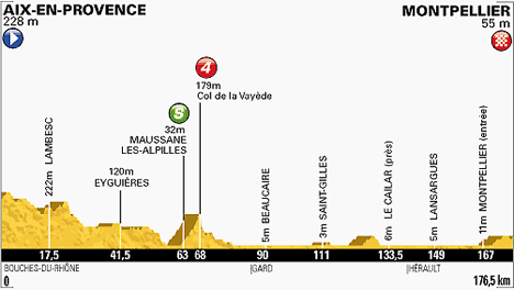 ![]() jeudi 4 juillet 2013 ![]() (Bouches-du-Rhône) : Aix-en-Provence (km 0) - Éguilles (km 2) - Saint-Cannat (km 12) - Lambesc (km 17.5) - Cazan (km 24) - Pont-Royal (km 27) - Mallemort (près de) (km 29) - Lamanon (km 37) - Eyguières (km 41.5) - Aureille (km 50.5) - Mouriès (km 56) - Maussane-les-Alpilles (km 63-sprint) - Les Baux-de-Provence (km 67.5) - Col de La Vayède (km 68-GPM4) - Fontvieille (près de) (km 74.5) - Chapelle Saint-Gabriel (km 80) - Tarascon (km 84) - (Gard) : Beaucaire (km 86.5) - Beaucaire (km 90) - Bellegarde (près de) (km 100.5) - Saint-Gilles (km 111) - Vauvert (km 129.5) - Le Cailar (près de) (km 133.5) - Aimargues (km 135) - (Hérault) : Lunel (km 141.5) - Saint-Just (km 145) - Lansargues (km 149) - Mauguio (près de) (km 157) - Boirargues (km 164.5) - entrée Montpellier (km 167) - Montpellier (km 176.5). ![]() ![]() ![]() Vidéo DailyMotion ![]() Étape : ![]() 1. André Greipel (All) en 3h59'02" (moy: 44.303 km/h) 2. Peter Sagan (Svq) 3. Marcel Kittel (All) 4. Mark Cavendish (Gbr) 5. Juan José Lobato (Esp) 6. Alexander Kristoff (Nor) 7. José Joaquin Rojas (Esp) 8. Danny Van Poppel (Hol) 9. Roberto Ferrari (Ita) 10. Samuel Dumoulin (Fra) 11. Cyril Lemoine (Fra) 12. Edvald Boasson Hagen (Nor) 13. Daryl Impey (Afs) 14. Juan Antonio Flecha (Esp) 15. Matthew Harley Goss (Aus) 16. Gregory Henderson (Nzl) 17. Cadel Evans (Aus) à 5" 18. Christopher Froome (Gbr) 19. Richie Porte (Aus) 20. Jack Bauer (Nzl) 21. Gorka Izagirre (Esp) 22. Alejandro Valverde (Esp) 23. Jean-Marc Marino (Fra) 24. Philippe Gilbert (Bel) 25. Tejay Van Garderen (Usa) 26. Rui Alberto Costa (Por) 27. Roman Kreuziger (Tch) 28. Andrew Talansky (Usa) 29. Alberto Contador (Esp) 30. Andreas Klöden (All) 31. Igor Anton (Esp) 32. Nicolas Roche (Irl) 33. Gatis Smukulis (Let) 34. Ramunas Navardauskas (Lit) 35. Pavel Brutt (Rus) 36. Michael Rogers (Aus) 37. Joaquin Rodriguez (Esp) 38. Eduard Vorganov (Rus) 39. Jean-Christophe Péraud (Fra) 40. Maxime Monfort (Bel) 41. Sylvain Chavanel (Fra) 42. Daniel Martin (Irl) 43. Michael Schär (Sui) 44. William Bonnet (Fra) 45. Arnold Jeannesson (Fra) 46. Tom Danielson (Usa) 47. Tom Veelers (Hol) 48. Simon Gerrans (Aus) 49. Lars Boom (Hol) 50. Sergey Lagutin (Ouz) 51. Przemyslaw Niemiec (Pol) 52. Michal Kwiatkowski (Pol) 53. Anthony Delaplace (Fra) 54. Jakob Fuglsang (Dan) 55. Wouter Poels (Hol) 56. Mikel Nieve (Esp) 57. Lars-Petter Nordhaug (Nor) 58. Nairo Alexander Quintana (Col) 59. Bauke Mollema (Hol) 60. Andrey Amador (Crc) 61. Michael Albasini (Sui) 62. Thibaut Pinot (Fra) 63. Jürgen Roelandts (Bel) 64. Mikel Astarloza (Esp) 65. José Ivan Gutierrez (Esp) 66. Ryder Hesjedal (Can) 67. Christophe Riblon (Fra) 68. Peter Velits (Svq) 69. Laurens Ten Dam (Hol) 70. Christophe Le Mével (Fra) 71. John Gadret (Fra) 72. Amaël Moinard (Fra) 73. Brice Feillu (Fra) 74. Jérémy Roy (Fra) 75. Arthur Vichot (Fra) 76. Ruben Perez (Esp) 77. Maxime Méderel (Fra) 78. Tony Gallopin (Fra) 79. Andy Schleck (Lux) 80. Jens Voigt (All) 81. Markel Irizar (Esp) 82. Manuele Mori (Ita) 83. Tom Dumoulin (Hol) 84. Fabio Sabatini (Ita) 85. Romain Bardet (Fra) 86. Brett Lancaster (Aus) 87. Bram Tankink (Hol) 88. Imanol Erviti (Esp) 89. Gert Steegmans (Bel) 90. Daniel Navarro (Esp) 91. Maarten Wynants (Bel) 92. Haimar Zubeldia (Esp) 93. Romain Sicard (Fra) 94. Jérôme Coppel (Fra) 95. Simon Clarke (Aus) 96. Jan Bakelants (Bel) 97. Davide Malacarne (Ita) 98. David Veilleux (Can) 99. Cyril Gautier (Fra) 100. Pierre Rolland (Fra) 101. Daniel Moreno (Esp) 102. Yukiya Arashiro (Jap) 103. Ian Stannard (Gbr) 104. Roy Curvers (Hol) 105. Julien Simon (Fra) 106. Johannes Fröhlinger (All) 107. Adam Hansen (Aus) 108. Vasil Kiryienka (Blr) 109. Marcel Sieberg (All) 110. Lars Ytting Bak (Dan) 111. Kristjan Koren (Slo) 112. Thomas Voeckler (Fra) 113. Bart De Clercq (Bel) 114. Julien El Farès (Fra) 115. Juan José Oroz (Esp) 116. Pierrick Fedrigo (Fra) 117. Tony Martin (All) 118. Alessandro De Marchi (Ita) 119. Robert Gesink (Hol) 120. Alexis Vuillermoz (Fra) 121. Yury Trofimov (Rus) 122. Alexandre Geniez (Fra) 123. Kanstantsin Siutsou (Blr) 124. Steve Morabito (Sui) 125. Daniele Bennati (Ita) à 24" 126. Ruben Plaza (Esp) 127. Alan Marangoni (Ita) 128. Jonathan Castroviejo (Esp) 129. Murilo Antonio Fischer (Bre) 130. Marcus Burghardt (All) à 29" 131. Aliaksandr Kuschynski (Blr) 132. Simon Geschke (All) à 32" 133. Manuel Quinziato (Ita) à 40" 134. Matteo Tosatto (Ita) 135. Koen De Kort (Hol) à 46" 136. Frederik Willems (Bel) à 51" 137. Davide Cimolai (Ita) 138. Damiano Cunego (Ita) à 59" 139. José Rodolfo Serpa (Col) 140. Matteo Bono (Ita) à 1'02" 141. Albert Timmer (Hol) à 1'03" 142. John Degenkolb (All) à 1'32" 143. Brent Bookwalter (Usa) à 1'40" 144. David Lopez Garcia (Esp) à 1'54" 145. Stuart O'Grady (Aus) à 2'17" 146. Matteo Trentin (Ita) à 2'59" 147. Maciej Bodnar (Pol) à 3'25" 148. Niki Terpstra (Hol) à 3'54" 149. Blel Kadri (Fra) 150. Enrico Gasparotto (Ita) 151. Benjamin Noval (Esp) à 3'58" 152. Sergio Miguel Paulinho (Por) 153. Jérôme Pineau (Fra) 154. Adriano Malori (Ita) à 5'18" 155. Francesco Gavazzi (Ita) 156. Moreno Moser (Ita) 157. Brian Vandborg (Dan) 158. Jesus Hernandez (Esp) 159. Alberto Losada (Esp) 160. Laurent Didier (Lux) 161. Rohan Dennis (Aus) 162. Christian Vande Velde (Usa) 163. Kris Boeckmans (Bel) 164. Thomas De Gendt (Bel) 165. David Millar (Gbr) 166. Guillaume Levarlet (Fra) 167. Geraint Thomas (Gbr) 168. Boy Van Poppel (Hol) 169. Peter Kennaugh (Gbr) 170. Yohann Gène (Fra) 171. Jérôme Cousin (Fra) 172. Sébastien Minard (Fra) 173. Kévin Reza (Fra) 174. Luis Angel Mate (Esp) 175. Jon Izagirre (Esp) 176. Egoitz Garcia (Esp) 177. Hubert Dupont (Fra) 178. Rein Taaramäe (Est) 179. Lieuwe Westra (Hol) 180. Tom Leezer (Hol) 181. Assan Bazayev (Kaz) à 5'46" 182. Rudy Molard (Fra) à 5'57" 183. Cameron Meyer (Aus) à 7'10" 184. Svein Tuft (Can) 185. Elia Favilli (Ita) 186. Jonathan Hivert (Fra) 187. Johnny Hoogerland (Hol) 188. Sep Vanmarck
