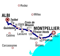 ![]() vendredi 5 juillet 2013 ![]() (Hérault) : Montpellier (km 0) - Pignan (près de) (km 3) - Cournonterral (près de) (km 7.5) - Cournonsec (km 9.5) - Montbazin (km 13.5) - Villeveyrac (km 21) - Montagnac (km 32) - Pézenas (km 38) - Roujan (km 49.5) - Gabian (km 53.5) - Roquessels (près de) (km 60) - Faugères (km 63) - Hérépian (km 71.5) - Col des 13 Vents (km 80-GPM3) - Saint-Gervais-sur-Mare (km 83) - Andabre (km 88) - Le Péras (km 92) - La Croix de Mounis (km 94.5) - Col de la Croix de Mounis (km 94.5-GPM2) - (Tarn) : Murat-sur-Vèbre (km 101) Col de la Jasse (km 108.5) - Moulin-Mage (km 110.5) - La Trivalle (km 114) - Lacaune (km 119) - Vié (km 122.5) - Gijounet (km 130.5) - Viane Pierre Segade (km 134) - Viane (km 135-sprint) - Lacombalié (km 136) - Lacaze (km 141) - Côte de la Quintaine (km 149-GPM3) - La Trivalle (km 154.5) - La Tibarié (km 158) - Mont-Roc (près de) (km 162.5) - Teillet (km 170.5) - Côte de Teillet (km 171-GPM4) - Maguelonne (km 178.5) - Laurens (km 186.5) - Labastide-Dénat (près de) (km 193.5) - Puygouzon (près de) (km 197) - entrée Albi (km 200) - Albi (km 205.5). ![]() ![]() ![]() Vidéo DailyMotion ![]() Étape : ![]() 1. Peter Sagan (Svq) en 4h54'12" (moy: 41.910 km/h) 2. John Degenkolb (All) 3. Daniele Bennati (Ita) 4. Michal Kwiatkowski (Pol) 5. Edvald Boasson Hagen (Nor) 6. Francesco Gavazzi (Ita) 7. Tony Gallopin (Fra) 8. Arthur Vichot (Fra) 9. Manuele Mori (Ita) 10. Sylvain Chavanel (Fra) 11. Ramunas Navardauskas (Lit) 12. Daryl Impey (Afs) 13. Juan Antonio Flecha (Esp) 14. Alexis Vuillermoz (Fra) 15. Simon Gerrans (Aus) 16. Bram Tankink (Hol) 17. Philippe Gilbert (Bel) 18. Wouter Poels (Hol) 19. Davide Malacarne (Ita) 20. Christophe Riblon (Fra) 21. Tejay Van Garderen (Usa) 22. Laurent Didier (Lux) 23. Christopher Froome (Gbr) 24. Rui Alberto Costa (Por) 25. Cadel Evans (Aus) 26. Jens Voigt (All) 27. Romain Bardet (Fra) 28. Julien El Farès (Fra) 29. Richie Porte (Aus) 30. Roman Kreuziger (Tch) 31. Andrew Talansky (Usa) 32. Peter Velits (Svq) 33. Nicolas Roche (Irl) 34. Tom Dumoulin (Hol) 35. Romain Sicard (Fra) 36. Alberto Contador (Esp) 37. Jean-Christophe Péraud (Fra) 38. Simon Clarke (Aus) 39. Damiano Cunego (Ita) 40. Tom Danielson (Usa) 41. Maxime Monfort (Bel) 42. Przemyslaw Niemiec (Pol) 43. Fabio Sabatini (Ita) 44. Andreas Klöden (All) 45. Brent Bookwalter (Usa) 46. Jakob Fuglsang (Dan) 47. Laurens Ten Dam (Hol) 48. Mikel Nieve (Esp) 49. Alejandro Valverde (Esp) 50. Joaquin Rodriguez (Esp) 51. Eduard Vorganov (Rus) 52. Bauke Mollema (Hol) 53. Lars-Petter Nordhaug (Nor) 54. Kristjan Koren (Slo) 55. Yukiya Arashiro (Jap) 56. Daniel Martin (Irl) 57. Amaël Moinard (Fra) 58. John Gadret (Fra) 59. Pierre Rolland (Fra) 60. Cyril Gautier (Fra) 61. Igor Anton (Esp) 62. Maxime Méderel (Fra) 63. Robert Gesink (Hol) 64. Guillaume Levarlet (Fra) 65. Thibaut Pinot (Fra) 66. Mikel Astarloza (Esp) 67. Daniel Navarro (Esp) 68. Andy Schleck (Lux) 69. Nairo Alexander Quintana (Col) 70. Ryder Hesjedal (Can) 71. Ruben Plaza (Esp) 72. Michael Rogers (Aus) 73. Haimar Zubeldia (Esp) 74. Jan Bakelants (Bel) 75. Blel Kadri (Fra) 76. Enrico Gasparotto (Ita) 77. Arnold Jeannesson (Fra) 78. Jérémy Roy (Fra) 79. Kanstantsin Siutsou (Blr) 80. Michael Albasini (Sui) 81. Alberto Losada (Esp) 82. Hubert Dupont (Fra) 83. Andrey Amador (Crc) 84. Steve Morabito (Sui) 85. José Rodolfo Serpa (Col) 86. Rudy Molard (Fra) 87. Pierrick Fedrigo (Fra) 88. Jesus Hernandez (Esp) 89. Rein Taaramäe (Est) 90. Daniel Moreno (Esp) 91. Yury Trofimov (Rus) 92. Jon Izagirre (Esp) 93. Matteo Tosatto (Ita) 94. Elia Favilli (Ita) 95. Manuel Quinziato (Ita) à 19" 96. Simon Geschke (All) à 24" 97. Juan José Oroz (Esp) à 29" 98. Maciej Bodnar (Pol) à 30" 99. Alessandro De Marchi (Ita) à 33" 100. David Millar (Gbr) à 1'24" 101. Peter Kennaugh (Gbr) 102. Alan Marangoni (Ita) à 1'35" 103. Moreno Moser (Ita) 104. Rohan Dennis (Aus) à 3'47" 105. Tony Martin (All) à 14'53" 106. Mark Cavendish (Gbr) 107. Tom Veelers (Hol) 108. Adam Hansen (Aus) 109. Marcel Sieberg (All) 110. Kris Boeckmans (Bel) 111. André Greipel (All) 112. Marcus Burghardt (All) 113. Jérôme Pineau (Fra) 114. José Ivan Gutierrez (Esp) 115. Koen De Kort (Hol) 116. Johannes Fröhlinger (All) 117. Imanol Erviti (Esp) 118. José Joaquin Rojas (Esp) 119. Jonathan Castroviejo (Esp) 120. Roy Curvers (Hol) 121. Thomas De Gendt (Bel) 122. Marcel Kittel (All) 123. Frederik Willems (Bel) 124. Lars Ytting Bak (Dan) 125. Aliaksandr Kuschynski (Blr) 126. Bart De Clercq (Bel) 127. Danny Van Poppel (Hol) 128. Markel Irizar (Esp) 129. Albert Timmer (Hol) 130. Anthony Delaplace (Fra) 131. David Veilleux (Can) 132. Stuart O'Grady (Aus) 133. Benjamin Noval (Esp) 134. Jürgen Roelandts (Bel) 135. Sergio Miguel Paulinho (Por) 136. Brian Vandborg (Dan) 137. Lieuwe Westra (Hol) 138. Boy Van Poppel (Hol) 139. Johnny Hoogerland (Hol) 140. Gatis Smukulis (Let) 141. David Lopez Garcia (Esp) 142. William Bonnet (Fra) 143. Jérôme Coppel (Fra) 144. Sébastien Minard (Fra) 145. Murilo Antonio Fischer (Bre) 146. Alexandre Geniez (Fra) 147. Niki Terpstra (Hol) 148. Michael Schär (Sui) 149. Matteo Trentin (Ita) 150. Matteo Bono (Ita) 151. Jonathan Hivert (Fra) 152. Alexander Kristoff (Nor) 153. Julien Simon (Fra) 154. Cyril Lemoine (Fra) 155. Pavel Brutt (Rus) 156. Gorka Izagirre (Esp) 157. Vasil Kiryienka (Blr) 158. Maarten Wynants (Bel) 159. Yohann Gène (Fra) 160. Sep Vanmarcke (Bel) 161. Kévin Reza (Fra) 162. Ruben Perez (Esp) 163. Lars Boom (Hol) 164. Jean-Marc Marino (Fra) 165. Thomas Voeckler (Fra) 166. Tom Leezer (Hol) 167. Brice Feillu (Fra) 168. Luis Angel Mate (Esp) 169. Juan José Lobato (Esp) 170. Christophe Le Mével (Fra) 171. Jack Bauer (Nzl) 172. Egoitz Garcia (Esp) 173. Geraint Thomas (Gbr) 174. Samuel Dumoulin (Fra) 175. Gert Steegmans (Bel) 176. Jérôme Cousin (Fra) 177. Sergey Lagutin (Ouz) 178. Ian Stannard (Gbr) 179. Matthew Harley Goss (Aus) 180. Alexey Lutsenko (Kaz) 181. Assan Bazayev (Kaz) 182. Gregory Hen