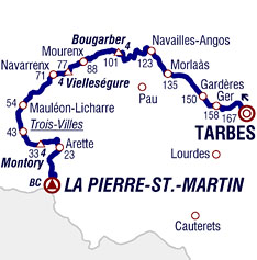 ![]() mardi 14 juillet 2015 ![]() 12h25 (Hautes-Pyrénées) : Tarbes - D7 Bordères-sur-l'Échez - D2 Tarbes (km 0) - D93 Ibos (près de) (km 4.5) - (Pyrénées-Atlantiques) : D817 Ger (km 9) - (Hautes-Pyrénées) : D47 Le Chêne (km 14) - Gardères (km 16.5) - (Pyrénées-Atlantiques) : D42 Eslourenties-Daban (km 20.5) - Arrien (km 22) - D62 Morlaàs (km 32) - D206 Maucor (km 35.5) - Saint-Castin (km 38) - Les Pyrénées (km 42) - Navailles-Angos (km 43.5) - D40 Sauvagnon (km 49.5) - D216 Caubios-Loos (km 52) - D716 Uzein (km 57) - D208 Bougarber (km 60.5) - D733 Bougarber (km 64) - D233 Côte de Bougarber (km 66-GPM4) - Cescau (km 67) - D32 Artix (km 73) - Mourenx (km 78.5) - D111 Vielleségure (près de) (km 87) - Côte de Vielleségure (km 90-GPM4) - Camptort (près de) (km 90.5) - D67 Navarrenx (km 95.5) - D947 Susmiou (km 96.5) - D2 Sus (km 98.5) - Moncayolle-Larrory-Mendibieu (km 107) - Berrogain (km 109) - Laruns (km 110) - Chéraute (km 111) - Mauléon-Licharre (km 112.5) - D918 Libarrenx (km 116.5) - Gotein (km 117.5) - Menditte (km 120.5) - Saint-Étienne (km 121) - Sauguis (km 122) - Trois-Villes (km 124-sprint) - Tardets-Sorholus (km 126) - Montory (km 131.5) - Côte de Montory (km 134-GPM4) - Lanne-en-Barétous (km 137) - D919 Aramits (km 140) - D133 Arette (km 143.5) - D132 La Mouline (km 151.5) - Col de Labays (km 162) - Col de Soudet (km 166) - La Pierre-Saint-Martin (km 167-GPM.HC). ![]() ![]() ![]() Vidéo DailyMotion ![]() Étape : ![]() 1. Christopher Froome (Gbr) en 4h22'07" (moy: 38.227 km/h) 2. Richie Porte (Aus) à 59" 3. Nairo Alexander Quintana (Col) à 1'04" 4. Robert Gesink (Hol) à 1'33" 5. Alejandro Valverde (Esp) à 2'01" 6. Geraint Thomas (Gbr) 7. Adam Yates (Gbr) à 2'04" 8. Pierre Rolland (Fra) 9. Tony Gallopin (Fra) à 2'22" 10. Tejay Van Garderen (Usa) à 2'30" 11. Alberto Contador (Esp) à 2'51" 12. Rafael Valls (Esp) à 3'09" 13. Jakob Fuglsang (Dan) 14. Serge Pauwels (Bel) à 3'19" 15. Warren Barguil (Fra) 16. Samuel Sanchez (Esp) à 4'00" 17. Bauke Mollema (Hol) à 4'09" 18. Jacques Janse Van Rensburg (Afs) 19. Eduardo Sepulveda (Arg) à 4'16" 20. Tanel Kangert (Est) à 4'25" 21. Vincenzo Nibali (Ita) 22. Laurens Ten Dam (Hol) 23. Mathias Frank (Sui) à 4'44" 24. Louis Meintjes (Afs) à 5'38" 25. Jean-Christophe Péraud (Fra) 26. Thomas Voeckler (Fra) 27. Jérôme Coppel (Fra) à 5'46" 28. Rigoberto Uran (Col) à 5'54" 29. Michael Rogers (Aus) à 5'57" 30. Gorka Izagirre (Esp) 31. Alexis Vuillermoz (Fra) à 6'04" 32. Steven Kruijswijk (Hol) 33. Wouter Poels (Hol) 34. Joaquin Rodriguez (Esp) à 6'07" 35. Haimar Zubeldia (Esp) à 6'15" 36. Emanuel Buchmann (All) à 6'28" 37. Dominik Nerz (All) 38. Bartosz Huzarski (Pol) à 6'47" 39. Brice Feillu (Fra) à 8'00" 40. Jarlinson Pantano (Col) 41. Cyril Gautier (Fra) à 8'11" 42. Geoffrey Soupe (Fra) à 8'20" 43. Jan Bakelants (Bel) à 8'50" 44. Romain Bardet (Fra) 45. Ryder Hesjedal (Can) 46. Giampaolo Caruso (Ita) 47. Mikaël Chérel (Fra) à 9'15" 48. Rafal Majka (Pol) à 9'52" 49. Thibaut Pinot (Fra) à 10'03" 50. Steve Morabito (Sui) 51. Roman Kreuziger (Tch) 52. Damiano Caruso (Ita) 53. Marcel Wyss (Sui) 54. Lars Ytting Bak (Dan) 55. Lieuwe Westra (Hol) à 11'02" 56. José Herrada (Esp) à 11'33" 57. Daniel Martin (Irl) à 11'34" 58. Andrew Talansky (Usa) 59. Pierrick Fedrigo (Fra) à 11'49" 60. Romain Sicard (Fra) à 12'12" 61. Merhawi Kudus Ghebremedhin (Ery) 62. Anthony Delaplace (Fra) à 12'37" 63. Bob Jungels (Lux) à 12'53" 64. Alberto Losada (Esp) 65. Jonathan Castroviejo (Esp) à 13'41" 66. Alexandre Geniez (Fra) 67. Perrig Quemeneur (Fra) 68. Markel Irizar (Esp) 69. Winner Andrew Anacona (Col) 70. Georg Preidler (Aut) 71. Wilco Kelderman (Hol) 72. Pierre-Luc Périchon (Fra) 73. Andriy Grivko (Ukr) 74. Thomas De Gendt (Bel) 75. Nicolas Roche (Irl) à 13'51" 76. Nicolas Edet (Fra) à 14'09" 77. Simon Geschke (All) à 14'28" 78. Tiago José Machado (Por) à 14'47" 79. Jérémy Roy (Fra) à 15'34" 80. Paul Voss (All) à 15'36" 81. Leopold König (Tch) à 15'45" 82. Michele Scarponi (Ita) à 16'09" 83. Daniel Navarro (Esp) à 16'40" 84. Luis Angel Mate (Esp) 85. Stijn Devolder (Bel) 86. Ruben Plaza (Esp) 87. Kristijan Durasek (Cro) 88. Nelson Felipe Oliveira (Por) 89. Peter Kennaugh (Gbr) 90. José João Mendes (Por) 91. Michael Schär (Sui) 92. Armindo Fonseca (Fra) 93. Bram Tankink (Hol) 94. Reinardt Janse Van Rensburg (Afs) 95. Kristjan Koren (Slo) 96. Roy Curvers (Hol) 97. Sylvain Chavanel (Fra) 98. Jan Barta (Tch) 99. Stephen Cummings (Gbr) 100. Rui Alberto Costa (Por) 101. Koen De Kort (Hol) 102. Grégory Rast (Sui) 103. Frédéric Brun (Fra) 104. Dmitriy Gruzdev (Kaz) 105. Edvald Boasson Hagen (Nor) 106. Sep Vanmarcke (Bel) à 18'10" 107. Paul Martens (All) 108. Michael Valgren Andersen (Dan) 109. Danilo Wyss (Sui) 110. Florian Vachon (Fra) 111. Albert Timmer (Hol) 112. Matteo Tosatto (Ita) 113. Daniele Bennati (Ita) 114. Julian David Arredondo (Col) à 19'53" 115. Angelo Tulik (Fra) à 20'43" 116. Yohann Gène (Fra) 117. Greg Van Avermaet (Bel) 118. Jens Debusschere (Bel) 119. Simon Yates (Gbr) à 21'09" 120. Stef Clement (Hol) à 21'34" 121. Matthias Brändle (Aut) 122. Nathan Haas (Aus) 123. Imanol Erviti (Esp) 124. Tyler Farrar (Usa) 125. Martin Elmiger (Sui) 126. Adriano Malori (Ita) 127. Ramon Sinkeldam (Hol) 128. Reto Hollenstein (Sui) 129. Florian Sénéchal (Fra) 130. Pieter Weening (Hol) 131. Julien Vermote (Bel) 132. Daniel Teklehaimanot (Ery) 133. Michal Golas (Pol) 134. Alex Dowsett (Gbr) 135. Jos Van Emden (Hol) 136. Luke Durbridge (Aus) 137. Christophe Riblon (Fra) 138. Arnaud Gérard (Fra) 139. Rohan Dennis (Aus) à 21'57" 140. John Degenkolb (All) à 22'19" 141. Manuel Quinziato (Ita) à 22'22" 142. Filippo Pozzato (Ita) 143. Matthieu Ladagnous (Fra) 144. Marcel Sieberg (All) 145. André Greipel (All) 146. Matteo Bono (Ita) 147. José Rodolfo Serpa (Col) 148. Bryan Nauleau (Fra) 149. Daniel Oss (Ita) 150. Rein Taaramäe (Est) 151. Tim Wellens (Bel) 152. Benoît Vaugrenard