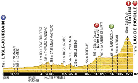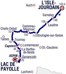 ![]() vendredi 8 juillet 2016 ![]() 13h15 (Gers) : D634 L'isle-Jourdain (km 0) - Labastide-Saves (km 9) - D632 Samatan (km 14.5) - D39 Lombez (km 18) - D632 Au Moulin (km 24.5) - Labarthe (km 26.5) - Laudine (km 27.5) - (Haute-Garonne) : Boulogne-sur-Gesse (km 49) - Hautes-Pyrénées) : Thermes-Magnoac (km 54) - Labouscarre (km 57.5) - Castelnau-Magnoac (km 60.5) - Puntous (km 65.5) - Lappène (km 71) - Trie-sur-Baïse (km 76.5) - Vidou (km 82) - Luby-Betmont (près de) (km 84.5) - Osmets (km 87) - Chelle-Debat (km 90) - D14 Cabanac (km 93.5) - Bordes (km 101.5) - D817 Tournay (km 105.5) - Ozon (km 106) - Lanespède (km 107.5) - Côte de Capvern (km 117-GPM4) - Capvern (près de) (km 117) - D938 Avezac (km 121) - La Barthe-de-Neste (km 122.5) - D929 Izaux (km 125.5) - Lortet (km 127) - Hèches (km 130) - Rebouc (km 132.5) - Sarrancolin (km 137-sprint) - Escalère (km 138.5) - Arreau (km 143.5) - D918 Col d'Aspin (km 155.5-GPM1) - Payolle (km 160.5) - D113 Lac de Payolle / Pelouse St-Jean (km 162.5). ![]() ![]() ![]() Vidéo DailyMotion ![]() Étape : ![]() 1. Stephen Cummings (Gbr) en 3h48'09" (moy : 42.735 km/h) 2. Daryl Impey (Afs) à 1'04" 3. Daniel Navarro (Esp) 4. Vincenzo Nibali (Ita) à 1'58" 5. Greg Van Avermaet (Bel) à 2'57" 6. Luis Angel Mate (Esp) à 3'37" 7. Geraint Thomas (Gbr) 8. Wouter Poels (Hol) 9. Gorka Izagirre (Esp) 10. Alejandro Valverde (Esp) 11. Christopher Froome (Gbr) 12. Roman Kreuziger (Tch) 13. Richie Porte (Aus) 14. Julian Alaphilippe (Fra) 15. Daniel Martin (Irl) 16. Romain Bardet (Fra) 17. Pierre Rolland (Fra) 18. Nairo Alexander Quintana (Col) 19. Stef Clement (Hol) 20. Bauke Mollema (Hol) 21. Emanuel Buchmann (All) à 3'55" 22. Wilco Kelderman (Hol) à 3'37" 23. Louis Meintjes (Afs) 24. Tejay Van Garderen (Usa) 25. Joaquin Rodriguez (Esp) 26. Fränk Schleck (Lux) à 4'00" 27. Eduardo Sepulveda (Arg) à 4'02" 28. Haimar Zubeldia (Esp) à 4'09" 29. Domenico Pozzovivo (Ita) à 3'37" 30. Fabio Aru (Ita) 31. Mikel Nieve (Esp) 32. Sergio Luis Henao (Col) 33. Alberto Contador (Esp) 34. Sébastien Reichenbach (Sui) 35. Jakob Fuglsang (Dan) 36. Damiano Caruso (Ita) à 4'02" 37. Mathias Frank (Sui) 38. Jarlinson Pantano (Col) à 4'00" 39. Jurgen Van den Broeck (Bel) à 3'37" 40. Warren Barguil (Fra) 41. Alex Howes (Usa) à 4'09" 42. Alexis Vuillermoz (Fra) à 4'29" 43. Fabrice Jeandesboz (Fra) à 4'27" 44. Daniel Moreno (Esp) à 4'29" 45. George Bennett (Nzl) à 4'17" 46. Ilnur Zakarin (Rus) à 4'34" 47. Tanel Kangert (Est) à 4'47" 48. Paul Voss (All) à 4'54" 49. Simon Geschke (All) 50. Patrick Konrad (Aut) à 5'03" 51. Diego Rosa (Ita) à 5'05" 52. Mikel Landa (Esp) à 4'58" 53. Rafal Majka (Pol) 54. Jan Bakelants (Bel) à 5'03" 55. Tom-Jelte Slagter (Hol) à 5'25" 56. Brice Feillu (Fra) à 5'48" 57. Sylvain Chavanel (Fra) 58. Robert Kiserlovski (Cro) à 5'30" 59. Steve Morabito (Sui) à 6'41" 60. Jan Polanc (Slo) 61. Serge Pauwels (Bel) à 6'23" 62. Thibaut Pinot (Fra) à 6'41" 63. Tony Martin (All) à 5'48" 64. Laurens Ten Dam (Hol) à 6'41" 65. Amaël Moinard (Fra) 66. Pierre-Luc Périchon (Fra) 67. Lawson Craddock (Usa) 68. Romain Sicard (Fra) à 8'53" 69. Georg Preidler (Aut) à 7'35" 70. Arnold Jeannesson (Fra) 71. Mikaël Chérel (Fra) à 7'39" 72. Peter Stetina (Usa) à 7'10" 73. Adam Yates (Gbr) à 3'30" 74. Ruben Plaza (Esp) à 6'41" 75. Matti Breschel (Dan) à 8'53" 76. Antoine Duchesne (Can) à 6'41" 77. Anthony Delaplace (Fra) à 8'53" 78. Martin Elmiger (Sui) 79. Luis Leon Sanchez (Esp) à 8'59" 80. Paul Martens (All) à 9'07" 81. Alberto Losada (Esp) à 9'17" 82. Angel Vicioso (Esp) 83. Jérôme Coppel (Fra) à 10'29" 84. Oliver Naesen (Bel) à 11'15" 85. Jurgen Roelandts (Bel) 86. Jan Barta (Tch) 87. Tsgabu Gebremaryam Grmay (Eth) 88. Luka Pibernik (Slo) à 12'49" 89. Jasper Stuyven (Bel) 90. Kristijan Durasek (Cro) 91. Paolo Tiralongo (Ita) 92. Chris Anker Sørensen (Dan) à 13'21" 93. Thomas De Gendt (Bel) 94. Andriy Grivko (Ukr) 95. Michael Valgren Andersen (Dan) 96. Tom Dumoulin (Hol) 97. Nicolas Edet (Fra) 98. Natnael Berhane (Ery) 99. Reinardt Janse Van Rensburg (Afs) 100. Markel Irizar (Esp) 101. Dylan Van Baarle (Hol) 102. Marcus Burghardt (All) à 13'48" 103. Angelo Tulik (Fra) à 13'21" 104. Bryan Coquard (Fra) 105. Jon Izagirre (Esp) 106. Florian Vachon (Fra) 107. Alexey Lutsenko (Kaz) 108. Arthur Vichot (Fra) 109. Matthieu Ladagnous (Fra) 110. Yukiya Arashiro (Jap) 111. Jérémy Roy (Fra) 112. Sebastian Langeveld (Hol) à 14'42" 113. Fabian Cancellara (Sui) 114. Matteo Bono (Ita) 115. Borut Bozic (Slo) à 14'59" 116. Iljo Keisse (Bel) à 17'25" 117. Fabio Sabatini (Ita) 118. Adam Hansen (Aus) 119. Reto Hollenstein (Sui) 120. Ramon Sinkeldam (Hol) 121. Roy Curvers (Hol) 122. Cesare Benedetti (Ita) 123. Bert-Jan Lindeman (Hol) 124. Rohan Dennis (Aus) 125. Jacopo Guarnieri (Ita) 126. Robert Wagner (All) 127. Grégory Rast (Sui) 128. Michael Schär (Sui) 129. Simon Gerrans (Aus) 130. Luke Durbridge (Aus) 131. Timo Roosen (Hol) 132. Alexander Kristoff (Nor) 133. Brent Bookwalter (Usa) 134. Kristjan Koren (Slo) 135. Rui Alberto Costa (Por) 136. Edvald Boasson Hagen (Nor) 137. Bartosz Huzarski (Pol) 138. Thomas Voeckler (Fra) 139. Daniel Teklehaimanot (Ery) 140. Sondre Holst Enger (Nor) 141. Vegard Breen (Nor) 142. Alexis Gougeard (Fra) 143. Ben Gastauer (Lux) 144. Cédric Pineau (Fra) 145. Cyril Gautier (Fra) 146. Samuel Dumoulin (Fra) 147. Winner Andrew Anacona (Col) 148. Armindo Fonseca (Fra) 149. Maarten Wynants (Bel) 150. Michael Albasini (Sui) 151. Matteo Tosatto (Ita) 152. Ramunas Navardauskas (Lit) 153. Christopher Juul Jensen (Dan) 154. Mathew Hayman (Aus) 155. Julien Vermote (Bel) 156. Luke Rowe (Gbr) 157. Albert Timmer (Hol) 158. John Degenkolb (All) 159. Marcel Kittel (All) 160. Yohann Gène (Fra) 161. Jérôme Cousin (Fra) 162. William Bonnet (Fra) 163. Tony Gallopin (Fra) 164. Vasil Kiryienka (Blr) 165. Davide Cimolai (Ita) 166. Andreas Schillinger (All) 167. Anthony Roux (Fra) 168. Jesus Herrada (Esp) 169. Edward Theuns (Bel)