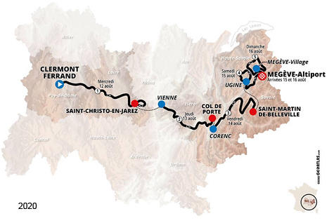 1 Clermont Ferrand-St Christo en Jarez, 218.5 km 1. Wout Van Aert (Bel) en 5h27'42" 2. Daryl Impey (Afs) 3. Egan Arley Bernal (Col) 4. Alejandro Valverde (Esp) 5. Tadej Pogacar (Slo) 6. Alexey Lutsenko (Kaz) 7. Sergio Andres Higuita (Col) 8. Benoît Cosnefroy (Fra) 9. Primoz Roglic (Slo) 10. Guillaume Martin (Fra) 2. Daryl Impey (Afs) à 4" 3. Egan Arley Bernal (Col) à 6" 2 Vienne-Col de Porte, 135 km 1. Primoz Roglic (Slo) en 3h39'40" 2. Thibaut Pinot (Fra) à 8" 3. Emanuel Buchmann (All) 4. Guillaume Martin (Fra) 5. Nairo Alexander Quintana (Col) à 10" 6. Miguel Angel Lopez (Col) 7. Daniel Felipe Martinez (Col) 8. Mikel Landa (Esp) 9. Richie Porte (Aus) 10. Egan Arley Bernal (Col) 2. Thibaut Pinot (Fra) à 12" 3. Emanuel Buchmann (All) à 14" 3 Corenc-St Martin de Belleville, 157 km 1. Davide Formolo (Ita) en 4h06'56" 2. Primoz Roglic (Slo) à 33" 3. Thibaut Pinot (Fra) 4. Emanuel Buchmann (All) 5. Daniel Felipe Martinez (Col) 6. Mikel Landa (Esp) 7. Guillaume Martin (Fra) 8. Tadej Pogacar (Slo) 9. Pavel Sivakov (Rus) à 39" 10. Miguel Angel Lopez (Col) 2. Thibaut Pinot (Fra) à 14" 3. Emanuel Buchmann (All) à 20" 4 Ugine-Megève, 148.5 km 1. Lennard Kämna (All) en 4h27'56" 2. David De la Cruz (Esp) à 41" 3. Julian Alaphilippe (Fra) à 56" 4. Jack Haig (Aus) à 58" 5. Kenny Elissonde (Fra) à 1'02" 6. Fausto Masnada (Ita) à 1'10" 7. Michal Kwiatkowski (Pol) à 1'19" 8. Marc Hirschi (Sui) à 1'43" 9. Thibaut Pinot (Fra) à 3'01" 10. Primoz Roglic (Slo) 2. Thibaut Pinot (Fra) à 14" 3. Guillaume Martin (Fra) à 24" 5 Megève-Megève, 142.5 km 1. Sepp Kuss (Usa) en 3h58'39" 2. Daniel Felipe Martinez (Col) à 27" 3. Tadej Pogacar (Slo) à 30" 4. Pavel Sivakov (Rus) à 45" 5. Tom Dumoulin (Hol) à 51" 6. Lennard Kämna (All) 7. Thibaut Pinot (Fra) à 1'02" 8. Guillaume Martin (Fra) à 1'04" 9. Romain Bardet (Fra) à 1'06" 10. Warren Barguil (Fra)