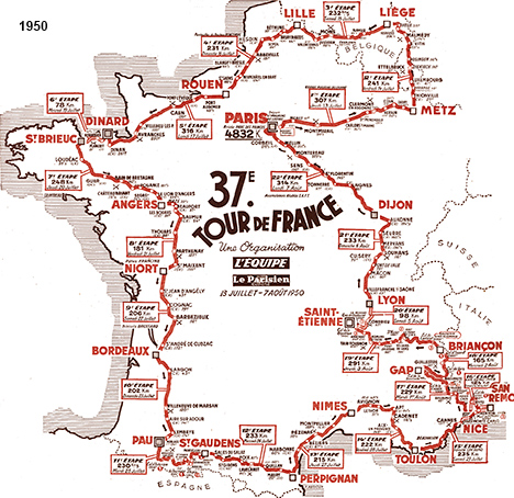 Étapes du 13 juillet au 7 août 1950