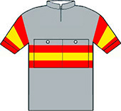 meilleur.Vainqueur le premier jour contre la montre dans son fief, Anquetil prend le maillot jaune à la faveur de la 2ème demi-étape, et après un court intermède de Darrigade, il le conserve jusqu'à Paris malgré une belle course de Charly Gaul dans les Alpes. Les tricolores répriment toutes les attaques et Jacques Anquetil remporte son second Tour sans avoir été mis en danger par ses adversaires dans les Pyrénées ce qui a rendu ce Tour de France assez décevant. Guido Carlesi prend la deuxième place à Charly Gaul, le dernier jour, pour deux secondes. Le parcours - Les partants - Les étapes - Les classements Histoire des maillots ![]() maillots : Jean-Louis Bey Étapes du 25 juin au 16 juillet 1961 1-1 Rouen - Versailles, 136.5 km 1-2 Versailles, 28.5 km CLM 2 Pontoise - Roubaix, 230.5 km 3 Roubaix - Charleroi, 197.5 km 4 Charleroi - Metz, 237.5 km 5 Metz - Strasbourg, 221 km 6 Strasbourg - Belfort, 180.5 km 7 Belfort - Chalon-sur-Saône, 214.5 km 8 Chalon-sur-Saone - Saint-Étienne, 240.5 km 9 St Etienne-Grenoble, 230 km 10 Grenoble - Torino, 250.5 km 11 Torino - Antibes, 225 km 12 Antibes - Aix-en-Provence, 199 km 13 Aix-en-Provence - Montpellier, 177.5 km 14 Montpellier - Perpignan, 174 km 15 Perpignan - Toulouse, 206 km 16 Toulouse - Luchon/Superbagnères, 208 km 17 Luchon - Pau, 197 km 18 Pau - Bordeaux, 207 km 19 Bergerac - Périgueux, 74.5 km CLM 20 Périgueux - Tours, 309.5 km 21 Tours - Paris, 252.5 km La petite histoire : - Darrigade gagne pour la cinquième fois la première étape et portera le maillot jaune une demi-journée. - Le classement général du Challenge Martini (par équipes) est établi au nombre de victoires journalières (2èmes et 3èmes places pour départager) Les nouveautés : - Villes étapes inédites: Pontoise, Antibes/Juan-les-Pins, Luchon/Superbagnères, Bergerac, Périgueux. - Ascensions inédites : Col du Donon, Col de la Schlucht, Superbagnères. Sponsors : - Classement général (maillot jaune) : / - Prime maillot jaune journalière : SHELL BERRE - Classement par points (maillot vert) : PIERJAC - Étapes : sponsor à chaque étape. - Challenge international (équipes) : MARTINI - Grand Prix de la montagne : ST-RAPHAEL-QUINQUINA - Combativité : SOUPLEDUR - Malchance : L'UNION ![]() ITALIE Directeur sportif : Antonio COVOLO ![]() 1 ACCORDI Renzo (Ita) 2 BATTISTINI Graziano (Ita) ab.11° 3 BONI Guido (Ita) np.14° 4 BRUGNAMI Carlo (Ita) ab.12° 5 CARLESI Guido (Ita) 6 FALASCHI Roberto (Ita) 7 FAVERO Vito (Ita) ab.8° 8 MASSIGNAN Imerio (Ita) 9 MINIERI Mario (Ita) 10 PELLEGRINI Armando (Ita) 11 PIZZOGLIO Ezio (Ita) ab.2° 12 ZAMBONI Adriano (Ita) FRANCE Directeur sportif : Marcel BIDOT ![]() 13 ANGLADE Henry (Fra) 14 ANQUETIL Jacques (Fra) 15 CAZALA Robert (Fra) 16 DARRIGADE André (Fra) 17 EVERAERT Pierre (Fra) 18 FORESTIER Jean (Fra) 19 PRIVAT René (Fra) ab.2° 20 GROUSSARD Joseph (Fra) 21 MAHÉ François (Fra) hd.2° 22 MASTROTTO Raymond (Fra) 23 ROSTOLLAN Louis (Fra) 24 STABLINSKI Jean (Fra) BELGIQUE Directeur sportif : Georges RONSSE ![]() 25 ADRIAENSENS Jan (Bel) 26 AERENHOUTS Frans (Bel) 27 CLAES Jean-Baptiste (Fra) 28 DAEMS Emile (Bel) ab.10° 29 HOEVENAERS Jos (Bel) 30 PAUWELS Eddy (Bel) 31 PLANCKAERT Jozef (Bel) 32 PROOST Louis (Bel) hd.7° 33 VAN AERDE Michel (Bel) 34 VANDERVEKEN René (Bel) hd.7° 35 VAN GENEUGDEN Martin (Bel) 36 VLOEBERGHS Jozef (Bel) hd.7° ESPAGNE Directeur sportif : Gabriel SAURA ![]() 37 ALOMAR Jaime (Esp) hd.2° 38 BERTRAN Antonio (Esp) hd.7° 39 CAMPILLO Juan (Esp) 40 GOMEZ DEL MORAL José (Esp) hd.2° 41 ITURAT Vicente (Esp) 42 MANZANEQUE Fernando (Esp) 43 MARIGIL René (Esp) 44 MORALES Carmelo (Esp) hd.2° 45 OTANO Luis (Esp) 46 PACHECO Miguel (Esp) ab.2° 47 PEREZ-FRANCES José (Esp) 48 SAN EMETERIO Julio (Esp) HOLLANDE Directeur sportif : Klaus BUCHLY ![]() 49 DAMEN Piet (Hol) 50 DE HAAN Johan (Hol) ab.9° 51 ENTHOVEN Dick (Hol) hd.10° 52 GELDERMANS Albertus (Hol) ab.6° 53 KERSTEN Jaap (Hol) 54 LAHAYE Jef (Hol) ab.11° 55 NIESTEN Coen (Hol) ab.9° 56 VAN EST Piet (Hol) hd.17° 57 VAN EST Wim (Hol) ab.9° 58 VAN DER STEEN Antoon (Hol) 59 WAGTMANS Wout (Hol) ab.9° 60 WESTDORP Jan (Hol) ALLEMAGNE Directeur sportif : KANTERS ![]() 61 BORGHARD Josef (All) hd.6° 62 DONIKE Manfred (All) hd.6° 63 FISCHERKELLER Friedhelm (All) ab.17° 64 JAROSCEWICZ Hans (All) ab.2° 65 JUNKERMANN Hans (All) 66 KEMPER Dieter (All) hd.6° 67 KUCKELKORN Helmut (All) hd.2° 68 OLDENBURG Horst (All) hd.6° 69 POMMER Reinhold (All) ab.2° 70 PUSCHEL Dieter (All) 71 RENZ Siegfried (All) ab.10° 72 TROCHE Ludwig (All) hd.6° SUISSE / LUXEMBOURG Directeur sportif : Alex BURTIN ![]() 73 GALLATI Fritz (Sui) 74 GIMMI Kurt (Sui) ab.2° 75 GRAF Rolf (Sui) 76 LUISIER Jean (Sui) hd.7° 77 RUCHET Serge (Sui) 78 RUEGG Alfred (Sui) 79 BLEY Raymond (Lux) hd.6° 80 BOLZAN Aldo (Lux) 81 ERNZER Marcel (Lux) 82 GAUL Charly (Lux) 83 SINTGES Jean-Pierre (Lux) ab.10° 84 THULL Roger (Lux) hd.12° GRANDE BRETAGNE Directeur sportif : MATER ![]() 85 BRITTAIN Stan (Gbr) ab.4° 86 COE Ron (Gbr) ab.5° 87 DENSON Vic (Gbr) ab.9° 88 ELLIOTT Seamus (Irl) 89 HITCHEN Albert (Gbr) ab.4° 90 LAIDLAW Ken (Gbr) 91 MOORE Ian (Irl) ab.3° 92 O'BRIEN George (Gbr) ab.3° 93 RYALL Peter (Gbr) hd.3° 94 RYAN Sean (Gbr) hd.2° 95 ROBINSON Brian (Gbr) 96 SIMPSON Tom (Gbr) ab.3° PARIS - NORD-EST Directeur sportif : Jean MAZIER ![]() 101 BOUVET Albert (Fra) ab.12° 102 DUEZ Henri (Fra) ab.2° 103 GAUDRILLET Philippe (Fra) ab.6° 104 GENESTE André (Fra) 105 GERUSSI Elio (Fra) 106 HOORELBEKE Raymond (Fra) 107 LACH Stéphane (Fra) 108 LE DISSEZ André (Fra) ab.17° 109 LEFEVRE jean-Claude (Fra) 110 SAUVAGE Jean-Claude (Fra) hd.6° 111 VIOT Bernard (Fra) 112 WASKO Joseph (Fra) CENTRE - MIDI Directeur sportif : Adolphe DELEDDA ![]() 113 ABATE Antoine (Fra) 114 BERGAUD Louis (Fra) 115 BUSTO Emmanuel (Fra) 116 DOTTO Jean (Fra) 117 HUOT Valentin (Fra) 118 LE MENN Camille (Fra) ab.12° 119 MATTIO Claude (Fra) 120 MILESI Jean (Fra) 121 NOVAK Anatole (Fra) ab.10° 122 ROHRBAC