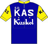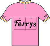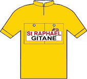 arrivées près du dernier col franchi.Disputé sous une météo morose, très bien conseillé par Géminiani, Anquetil jugule les assauts de Poulidor et surtout de Bahamontes dans les Pyrénées. Le Normand domine dans les Alpes et s'impose au Parc des Princes après avoir remporté deux étapes de montagne et les chronos de l'épreuve. C'est sa plus belle victoire. A l'issue du Tour, Anquetil déclare qu'il orientera sa saison 1964 sur le Giro. Le parcours - Les partants - Les étapes - Les classements Histoire des maillots ![]() carte et profils : journal l'Équipe et Le Parisien. maillots : Jean-Louis Bey Étapes du 23 juin au 14 juillet 1964 1 Paris/Nogent sur Marne - Épernay, 152.5 km 2-1 Reims - Jambes (Bel), 185.5 km 2-2 Jambes (Bel), 21.6 km CLM par équipes 3 Jambes (Bel) - Roubaix, 223.5 km 4 Roubaix - Rouen, 235.5 km 5 Rouen -Rennes, 285 km 6-1 Rennes - Angers, 118.5 km 6-2 Angers, 24.5 km CLM 7 Angers - Limoges, 236 km 8 Limoges - Bordeaux, 231.5 km 9 Bordeaux - Pau, 202 km 10 Pau - Bagnères de Bigorre, 148.5 km 11 Bagnères-de-Bigorre - Luchon, 131 km 12 Luchon - Toulouse, 172.5 km 13 Toulouse - Aurillac, 234 km 14 Aurillac - Saint-Étienne, 236.5 km 15 St Étienne - Grenoble, 174 km 16 Grenoble - Val d'Isère, 202 km 17 Val d'Isère - Chamonix, 227.5 km 18 Chamonix - Lons le Saunier, 225 km 19 Arbois - Besançon, 54.5 km CLM 20 Besançon - Troyes, 233.5 km 21 Troyes - Paris, 185.5 km La petite histoire : - Journée de repos : Aurillac le samedi 6 juillet. - Bonifications : 1' au premier de l'étape, 30" au deuxième. - Montagne : cols de 1ère cat. : 15, 12, 10, 8, 6, 5, 4 , 3, 2, 1 pts - cols de 2ème cat. : 10, 8, 6, 4, 3, 2, 1 pts - cols de 3ème cat. : 5, 4, 3, 2 et 1 pts. Les nouveautés : - Nouvelles villes étapes : Épernay, Jambes, Val d'Isère. - Nouvelles ascensions : Entremont et Val-d'Isère. Les sponsors : - Classement étapes et général, "maillot jaune" : rente journalière : Le Pantalon LE TORO - Classement individuel par points, "maillot vert" : non sponsorisé - Trophée du meilleur grimpeur : St-RAPHAËL - Challenge par équipes, casquettes jaunes : MARTINI - Dotation au coureur ayant gagné le plus de places à une étape : chocolats POULAIN - Combativité : DEXTRO ENERGEN - Amabilité : Oranges OUTSPAN ![]() SAINT RAPHAEL-GITANE Directeur sportif : Raphaël GÉMINIANI ![]() 1 ANQUETIL Jacques (Fra) 2 STABLINSKI Jean (Fra) ab.16° 3 ELLIOTT Seamus (Irl) 4 EVERAERT Pierre (Fra) 5 GELDERMANS Albertus (Hol) 6 IGNOLIN Guy (Fra) 7 LEBAUBE Jean-Claude (Fra) 8 NOVAK Anatole (Fra) 9 ROSTOLLAN Louis (Fra) hd.15° 10 THIELIN Gérard (Fra) MERCIER-B.P-HUTCHINSON Directeur sportif : Antonin MAGNE ![]() 11 BEUFFEUIL Pierre (Fra) 12 CAZALA Robert (Fra) 13 GAINCHE Jean (Fra) 14 HELLEMANS Alfons (Bel) 15 MELCKENBEECK Frans (Bel) np.9° 16 MILESI Jean (Fra) 17 POULIDOR Raymond (Fra) 18 LEBORGNE Simon (Fra) hd.3° 19 VAN SCHIL Victor (Bel) 20 VERHAEGEN August (Bel) FAEMA-FLANDRIA Directeur sportif : Brik SCHOTTE ![]() 21 BOCKLANT Willy (Bel) ab.16° 22 BRANDS Frans (Bel) 23 DESMET Armand (Bel) 24 FORÉ Noël (Bel) ab.10° 25 GOMEZ DEL MORAL Antonio (Esp) 26 ONGENAE Marcel (Bel) 27 PLANCKAERT Jozef (Bel) ab.12° 28 ROMAN Clément (Bel) ab.11° 29 SOLER Angelino (Esp) 30 SUAREZ Antonio (Esp) WIEL'S-GROENE LEEUW Directeur sportif : Albert DE KIMPE ![]() 31 BEHEYT Benoni (Bel) 32 DESMET Gilbert 1 (Bel) ab.17° 33 DESMET Gilbert 2 (Bel) 34 DOOM Daniel (Bel) ab.17° 35 JUNKERMANN Hans (All) 36 MESSELIS André (Bel) ab.16° 37 MOLENAERS Yvo (Bel) ab.17° 38 PAUWELS Eddy (Bel) 39 PUSCHEL Dieter (All) 40 VAN MEENEN René (Bel) él.16° MARGNAT-PALOMA-DUNLOP Directeur sportif : Raoul RÉMY ![]() 41 BAHAMONTES Federico (Esp) 42 CAMPILLO Juan (Esp) 43 DARRIGADE André (Fra) ab.16° 44 DOTTO Jean (Fra) 45 DUPONT Jean (Fra) hd.14° 46 GRACZYK Jean (Fra) 47 MATTIO Claude (Fra) 48 OTANO Luis (Esp) 49 THOMIN Joseph (Fra) 50 VELLY Joseph (Fra) ab.10° CARPANO Directeur sportif : Ettore MILANO ![]() 51 AZZINI Carlo (Ita) ab.16° 52 BAILETTI Antonio (Ita) 53 BALMAMION Franco (Ita) ab.3° 54 BARALE Germano (Ita) np.17° 55 BARIVIERA Vendramino (Ita) ab.8° 56 GIMMI Kurt (Sui) ab.17° 57 COGLIATI Ottavio (Ita) ab.3° 58 GENTINA Giancarlo (Ita) np.12° 59 GUERNIERI Loris (Ita) 60 SARTORE Giuseppe (Ita) ab.16° PELFORTH-SAUVAGE-LEJEUNE-WOLBER Directeur sportif : Maurice DE MUER ![]() 61 ANGLADE Henry (Fra) 62 EPAUD Guy (Fra) 63 ENTHOVEN Dick (Hol) 64 FOUCHER André (Fra) 65 GROUSSARD Georges (Fra) 66 GROUSSARD Joseph (Fra) 67 JANSSEN Jan (Hol) ab.10° 68 LACOMBE Roland (Fra) hd.10° 69 MAHE François (Fra) 70 RAMSBOTTOM Alan (Gbr) FERRYS Directeur sportif : Damian PLA SANCHIS ![]() 71 BERTRAN Antonio (Esp) 72 HERNANDEZ Rogelio (Esp) 73 KARMANY Antonio (Esp) 74 MANZANEQUE Fernando (Esp) 75 MARTIN Esteban (Esp) 76 MAS Gabriel (Esp) 77 PEREZ FRANCES Jose (Esp) 78 REY Raul (Esp) 79 SAN EMETERIO Julio (Esp) 80 CRUZ Emilio (Esp) G.B.C -LIBERTAS Directeur sportif : Guillaume DRIESSENS ![]() 81 AERENHOUTS Frans (Bel) 82 BAENS Roger (Bel) ab.10° 83 DERBOVEN Willy (Bel) 84 JANSSENS Ludo (Bel) 85 SCHROEDERS Willy (Bel) hd.11° 86 SORGELOOS Edgar (Bel) ab.11° 87 VAN GENEUGDEN Martin (Bel) 88 VAN LOOY Rik (Bel) 89 VAN TONGERLOO Guillaume (Bel) 90 ZILVERBERG Hubertus (Hol) np.16° I.B.A.C - MOLTENI Directeur sportif : Giorgio ALBANI ![]() 91 BATTISTINI Graziano (Ita) 92 FERRARI Danilo (Ita) ab.16° 93 FONTONA Renzo (Ita) 94 MINETTO Ernesto (Ita) hd.8° 95 OTTAVIANI Angel (Ita) hd.8° 96 FORNONI Giacomo (Ita) ab.8° 97 CARLESI Guido (Ita) np.14° 98 DANTE Peppino (Ita) hd.8° 99 FALASCHI Roberto (Ita) ab.16° 100 VELUCCHI Nello (Ita) ab.3° * 91 à 95 : IBAC, 96 à 100 : MOLTENI KAS Directeur sportif : Dalmacio LANGARICA ![]() 101 BARRUTIA Antonio (Esp) ab.11° 102 ECHEVERRIA Carlos (Esp) hd.3° 103 ELORZA Sebastian (Esp) 104 GABICA Francisco (Esp) 105 LOPEZ CANO José-Maria (Esp) hd.3° 106 PACHECO Miguel (Esp) 107 MARTIN PINERA Manuel (Esp) hd.3° 108 URIONA Valentin (Esp) 109 SANCHEZ CAMERO Juan (Esp