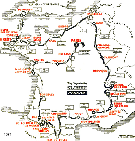 Étapes du 27 juin au 21 juillet 1974