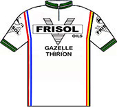 réalise son dernier Tour de France qu'il termine à la 6ème place.Une 64ème édition passionnante ! Le parcours - Les partants - Les étapes - Les classements Histoire des maillots ![]() profils : journal l'Équipe et Le Parisien. maillots : Jean-Louis Bey Étapes du 30 juin au 24 juillet 1977 Prol. Fleurance, 5 km CLM 1 Fleurance - Auch, 237 km 2 Auch - Pau, 253 km 3 Oloron-Sainte-Marie - Vitoria (Esp), 248.2 km 4 Vitoria - Seignosse-le-Penon, 256 km 5-1 Morcenx - Bordeaux, 138.5 km 5-2 Bordeaux/Circuit du Lac, 30.2 km CLM 6 Bordeaux - Limoges, 225.5 km 7-1 Jaunay-Clan - Angers, 139.5 km 7-2 Angers, 4.5 km CLM par équipes 8 Angers - Lorient, 246.5 km 9 Lorient - Rennes, 187 km 10 Bagnoles-de-l'Orne - Rouen, 174 km 11 Rouen - Roubaix, 242.5 km 12 Roubaix - Charleroi, 192.5 km 13-1 Freibourg im Breisgau (All), 46 km 13-2 Altkirch - Besançon, 159.5 km 14 Besançon - Thonon-les-Bains, 230 km 15-1 Thonon-les-Bains - Morzine, 105 km 15-2 Morzine-Avoriaz, 14 km CLM 16 Morzine - Chamonix, 121 km 17 Chamonix - L'Alpe-d'Huez, 184.5 km 18 Voiron - Saint-Étienne, 199.5 km 19 Saint-Trivier - Dijon, 171.5 km 20 Dijon - Dijon, 50 km CLM 21 Montereau - Versailles, 141.5 km 22-1 Paris/Champs Elysées, 6 km CLM 22-2 Circuit des Champs Élysées, 90.7 km La petite histoire : - Dietrich Thurau, jeune allemand de 22 ans, gagne la grande étape pyrénéenne Auch-Pau ainsi que l'étape contre-la-montre de Bordeaux (30 km) à plus de 46 km/h de moyenne, prenant 50 secondes à Merckx et plus d'une minute à Thévenet. Il portera le maillot jaune pendant deux semaines mais le perd après un fléchissement dans les Alpes. - Apogée de Thévenet qui prend le maillot après le contre-la-montre de Dijon. Déclin de Merckx, malade, qui ne termine que 6ème à 12'38". - Maillot blanc du meilleur jeune : Thurau. - Echappée fleuve de Bernard Quilfen : 222 km. Les nouveautés : - Création du challenge par équipe aux points. - Nouvelles villes étape : Vitoria (Esp), Seignosse-le-Penon. - Ascensions inédites : Pas de Morgins. Les barêmes : Pas de bonifcations en temps sur les étapes. Points pour le maillot vert : - étapes de plaine : 25 pts, 20, 16, 14, 12, 10, 9, 8, 7, 6, 5, 4, 3, 2, 1 aux 15 premiers. - étapes de montagne : 15 pts, 14, 13, 12, 11, 10, 9, 8, 7, 6, 5, 4, 3, 2, 1 aux 15 premiers - étapes CLM : 12 pts, 10, 8, 7, 6, 5, 4, 3, 2, 1 aux 10 premiers - prologue et demi-étapes CLM : 8 pts, 6, 5, 4, 3, 2, 1 aux 7 premiers - "rush" : 4 pts, 2 & 1 pt Un classement des "rush" est établi séparément, chaque point-chaud attribuant : 6 pts, 4, 3, 2 & 1 aux 5 premiers. Points pour la montagne : - 1ère catégorie : 20 pts, 16, 14, 12, 10, 8, 6, ..., 1 aux 12 premiers - 2ème catégorie : 15 pts, 12, 10, 8, 6, 5, ..., 1 aux 10 premiers - 3ème catégorie : 8 pts, 6, 4, 3, 2, 1 aux 6 premiers - 4ème catégorie : 3 pts, 2, & aux 3 premiers Meilleur rouleur : par addition des chronos de Fleurance, Bordeaux, Avoriaz, Dijon & Champs-Élysées. Les sponsors : - Étapes : / - Classement général, "maillot jaune" : MIKO - Classement individuel par points, "maillot vert" : MICHELIN - Classement équipes par points : MICHELIN - Grand Prix de la Montagne : Chocolat POULAIN - Grand Prix des jeunes : ALFA-LAVAL - Rush : SIMCA - Challenge international par équipes : LE COQ SPORTIF - Prix de la combativité : LA REDOUTE - Amabilité : BNP - La meilleure échappée : EDOX - Le ruban bleu : ADIDAS ![]() LEJEUNE-BP Directeur sportif : Henry Anglade & Pierre SCHOOR ![]() 1 VAN IMPE Lucien (Bel) 2 BAZZO Pierre (Fra) np.10° 3 BRACKE Ferdinand (Fra) hd.17° 4 DILLEN René (Bel) hd.17° 5 GUTIEREZ Antoine (Fra) hd.17° 6 JULIEN Ferdinand (Fra) 7 LE DENMAT Michel (Fra) 8 LEGEAY Roger (Fra) 9 PLET Eugène (Fra) 10 SCHUITEN Roy (Hol) hd.17° MIKO-MERCIER-HUTCHINSON Directeur sportif : Louis CAPUT & Maurice QUENTIN ![]() 11 ZOETEMELK Joop (Hol) 12 BERTIN Yvon (Fra) hd.16° 13 DELISLE Raymond (Fra) 14 HOBAN Barry (Gbr) 15 LE GUILLOUX Maurice (Fra) ab.14° 16 MARTIN Raymond (Fra) 17 PERRET Patrick (Fra) np.20° 18 ROUXEL Charly (Fra) hd.17° 19 SEZNEC Christian (Fra) 20 VALLET Bernard (Fra) PEUGEOT-ESSO-MICHELIN Directeur sportif : Maurice DE MUER & Robert NAEYE ![]() 21 THÉVENET Bernard (Fra) 22 BEON Patrick (Fra) hd.17° 23 BOURREAU Bernard (Fra) 24 DANGUILLAUME Jean-Pierre (Fra) 25 DELÉPINE Régis (Fra) hd.17° 26 ESCLASSAN Jacques (Fra) 27 LAURENT Michel (Fra) 28 OVION Régis (Fra) 29 SIBILLE Guy (Fra) 30 TALBOURDET Georges (Fra) hd.17° KAS-CAMPAGNOLO Directeur sportif : Antonio BARRUTIA ![]() 31 GALDOS Francisco (Esp) 32 ANDIANO Julian (Esp) hd.17° 33 CIMA José-Enrique (Esp) 34 LOPEZ-CARRIL Vicente (Esp) 35 MARTINEZ-HEREDIA Enrique (Esp) 36 MARTINS José (Por) 37 MENENDEZ Antonio (Esp) 38 NAZABAL José (Esp) np.16° 39 PESARRODONA José (Esp) ab.2° 40 POZO Sebastian (Esp) ab.18° FRISOL-GAZELLE-THIRION Directeur sportif : Florent VAN VAERENBERGH & Edgar DE MAERE ![]() 41 OCANA Luis (Esp) 42 DEN HERTOG Fedor (Hol) ab.13b° 43 LOYSCH Roger (Bel) 44 RAAS Jan (Hol) np.15a° 45 ROMERO André (Fra) ab.2° 46 ROSIERS Roger (Bel) hd.17° 47 SCHEPMANS Benny (Bel) hd.9° 48 SMIT Theo (Hol) ab.14° 49 WELLENS Paul (Bel) 50 WESEMAEL Wilfried (Bel) hd.17° GITANE-CAMPAGNOLO Directeur sportif : Cyrille GUIMARD & Maurice CHAMPION ![]() 51 MESLET Alain (Fra) 52 BOSSIS Jacques (Fra) hd.17° 53 BERLAND Roland (Fra) 54 CHALMEL André (Fra) 55 CHASSANG Jean (Fra) hd.17° 56 MINTKIEWICZ Robert (Fra) hd.15b° 57 MONEYRON Gérard (Fra) hd.17° 58 QUILFEN Bernard (Fra) hd.17° 59 TEIRLINCK Willy (Bel) hd.17° 60 VILLEMIANE Pierre-Raymond (Fra) TEKA Directeur sportif : Julio SAN EMETERIO & Miguel MORENO ![]() 61 TORRES Pedro (Esp) 62 AJA Gonzalo (Esp) 63 AGOSTINHO Joaquim (Por) 64 ALFONSEL Bernardino (Esp) hd.17° 65 BALAGUE Luis (Esp) 66 ESPARZA Manuel (Esp) ab.5° 67 GANDARIAS Andres (Esp) 68 MELERO Carlos (Esp) hd.17° 69 MENDES Fernando (Esp) 70 THALER Klaus-Peter (All) hd.17° FIAT Directeur sportif : Raphaël GÉMINIANI & Robert LELANGUE
