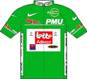 maillot vert : étapes de plat : 35, 30, 26, 24, 22, 20, 19, 18, ..., 1 pt - moyenne montagne : 25, 22, 20, 18, 16, 15, 14, ..., 1 pt - haute montagne : 20, 17, 15, 13, 12, ..., 1 pt - CLM : 15, 12, 10, 8, 6, 5, 4, ..., 1 pt - sprint intermédiaire (toutes étapes) : 6 pts, 4, 2 pts