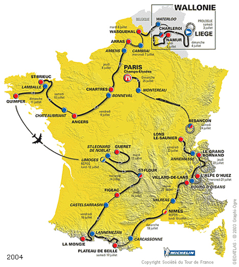 Etapes du 3 au 25 juillet 2004