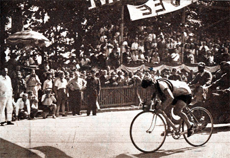 Jean Robic en termine à Pau... au sprint. (photo Miroir-Sprint n° 60 du