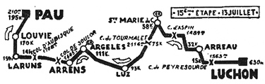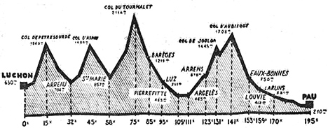 120) - Marsous (km 121) - Arrens (km 123) - Col de Soulor (km 131) - (Basses-Pyrénées) : Col d'Aubisque
