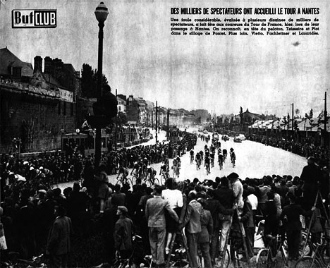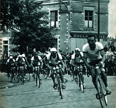 L'équipe bretonne se montre dans la traversée de Nantes. (photo Miroir-Sprint spécial du 17 juillet 1947.)