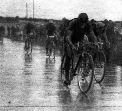 - Dans ce qui reste du peloton, les Italiens se surveillent entre eux, les Français regardent les Bretons, et les Bretons lorgnent sur Robic. Néanmoins l'allure est soutenue puisque tout le monde arrivera avec plus ou moins une heure d'avance sur l'horaire prévu.