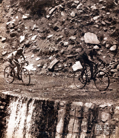 Lazaridès se fraye un passage en haut du Galibier (photo Sprint du 7 juillet 47)