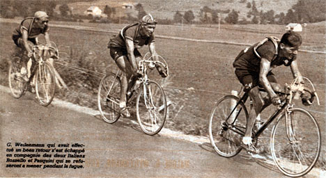 Weilenmann s'est échappé en compagnie de Rossello et Pasquini, équipiers de Coppi.