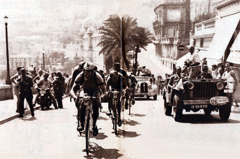 A la sortie de Monte-Carlo, au pied du Mont-des-Mules, les poursuivants emmenés par Impanis, vont reprendre Rémy.