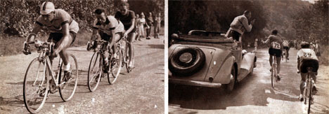 Impanis a dépassé Robic et Brulé lesquels s'installent tranquillement dans sa roue... avant de se faire sermonner par le commissaire Boudard !