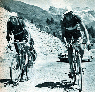 Buchonnet est revenu sur Coppi avant le col de Vars qu'ils escaladent ensemble jusqu'à 2 km du sommet où Coppi s'envole pour ne plus être revu (photo But et Club - Le Miroir des Sports n° 307 du 27 juillet 1951).