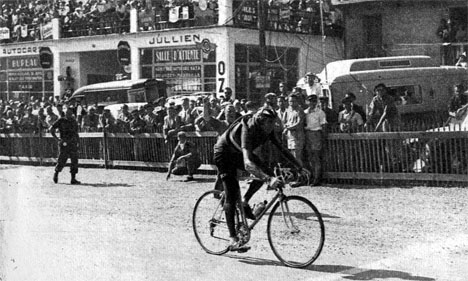 Fausto Coppi s'impose avec panache à Briançon devant une foule enthousiaste (photo Miroir-Sprint du 27 juillet 1951).