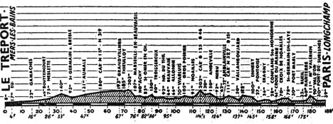 12h00 (Seine-Inférieure) : Le Tréport / Mers les Bains (km 0) - Eu (km 4) - (Somme) : Oust (km 6) - Bouvaincourt-sur-Bresle (km 9) - Beauchamps (km 11) - Gamaches (km 16) - Bouttencourt (km 24) - Neslette (km 26) - Sénarpont (km 32) - Saint-Germain-sur-Bresle (km 39) - (Seine-Inférieure) - Aumale (km 47) - Carr. N15-N29 (km 50) - (Oise) : Fouilloy (km 54) - Saint-Thibault (km 59) - Sarcus (km 61) - Grandvilliers (km 67) - Halloy (km 68) - Thieulloy-Saint-Antoine (km 70) - Fontaine-Lavagane (km 74) - Marseille-en-Beauvaisis (km 76) - Achy (km 79) - Saint-Omer-en-Chaussée (km 82) - Troisereux (km 88) - Notre-Dame-du-Thil (km 93) - Beauvais (km 95) - Allone (km 99) - Warluis (km 102) - Noailles (km 110) - Andeville (km 120) - Méru (km 124-ravitaillement) - Amblainville (km 128) - (Seine-et-Oise) : Vallangoujard (km 137) - Ennery (km 145) - Pontoise (km 148) - Saint-Ouen-l'Aumône (km 149) - Eragny (km 152) - Conflans-Sainte-Honorine (km 156) - Saint-Germain (km 166) - Port-Marly (km 168) - Bougival (km 171) - Rueil (km 175) - (Seine) : Nanterre (km 177) - Bd Washington Le Val d'Or (km181) - Suresnes par Bd. de Versailles - Pont de Suresnes (km 183) - Paris / Hippodrome de Longchamp (km 188).