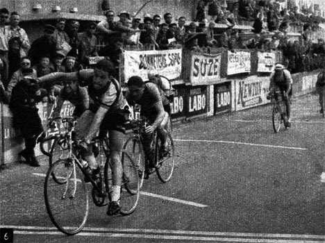- Au Pressoir (km 163), on pointe Anzile à 1'35" et le peloton à 2'45" puis bientôt 3'. La course est jouée et les écarts ne feront que s'accentuer. Au sprint, bien lancé par Lazaridès, Caput se dégage aux 200 mètres mais il se fait déborder par Van Geneugden qui gagne d'une longueur. Deledda qui attaquait le Belge aux 50 mètres, doit renoncer, victime d'un saut de chaîne. Le peloton, Magni en tête, arrive 4'13" plus tard.