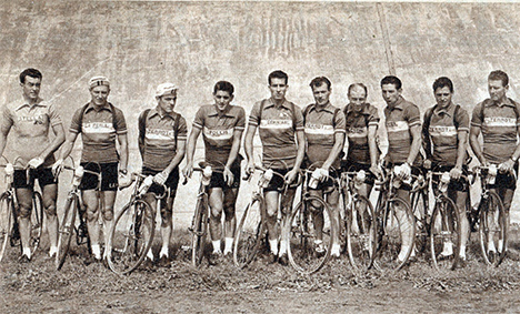 L'Équipe de France au départ du Tour 1954 avec Bobet en jaune.