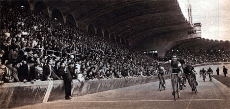 Arrigo Padovan s'impose sur la piste vélodrome à Bordeaux (photo Miroir-Sprint n° 631A du 7 juillet 1958).
