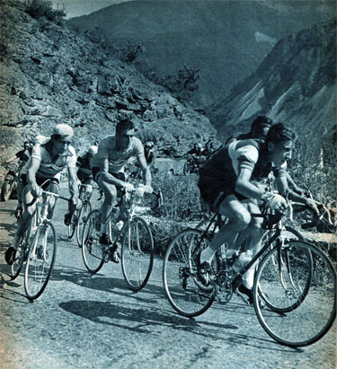 Les vainqueurs du jour emmené dans le col de la Sentinelle par un Anquetil qui approche de sa forme optimale. Nencini caché par le Normand suivi du Malillot jaune
