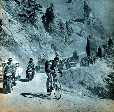 Dans la traversée de la Casse-Déserte (Izoard), Nino Catalano est encore en tête mais Bahamontes revient très fort et le passera à 1 km du sommet