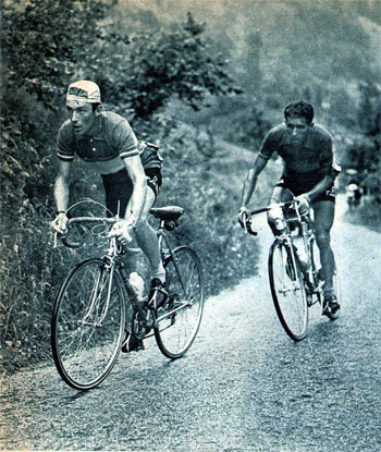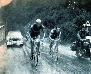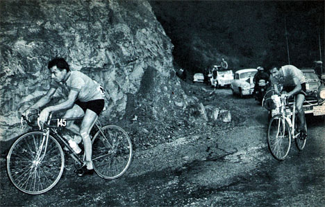 Dans le col du Luitel, Charly Gaul a attaqué et seul Bahamontes a pris (pour un temps) sa roue