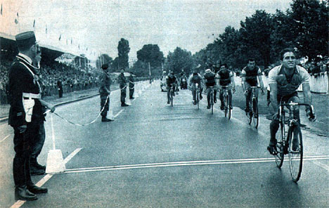 A Caen, toujours sur route mouillée, Tino Sabbadini (O.SO) s'impose de quelques longueurs devant Louison Bobet.