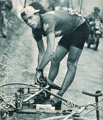 Après cette crevaison qui a fait perdre beaucoup de temps à Rolf Graf, il va réaliser l'exploit de ce Tour 1959 !