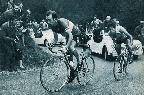 Gaul et Bahamontes décrochent leurs adversaires dans la montée de la Forclaz de Montmin. Indiscutablement les plus forts de ce Tour en montagne.