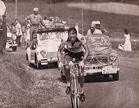- Les premières tentatives sont l'oeuvre de l'ancien maillot jaune Vermeulin puis de Busto, Cazala, Morales ou encore Robinson tandis que derrière Sutton (ennuis mécaniques) et Wierucki (crevaison) chassent pour revenir. A Bellegarde (km 39), le Polonais de Liège est à nouveau décroché du peloton sur une accélération de Gismondi. Darrigade, Grackzyk, Bahamontes etc. restent un moment à l'avant avec Gismondi mais le regroupement intervient sous la férule d'Anglade.