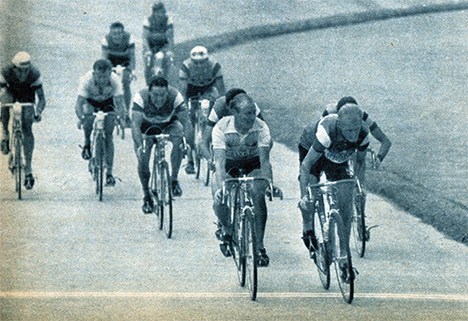 "Popoff" Graczyk s'impose sur le vélodrome de Rennes devant son co-équipier Darrigade, derrière se classent Favero et Hoevenaers.