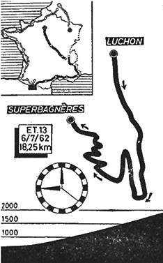 Federico Bahamontes domine totalement les Pyrénées et s'impose facilement dans ce contre-la-montre.