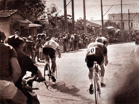 Anquetil dépasse Junkermann et va déborder Anglade un peu plus loin.