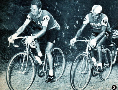 Derrière Anquetil contre Bahamontes à trois reprises dans le Portillon et poursuit Poulidor.