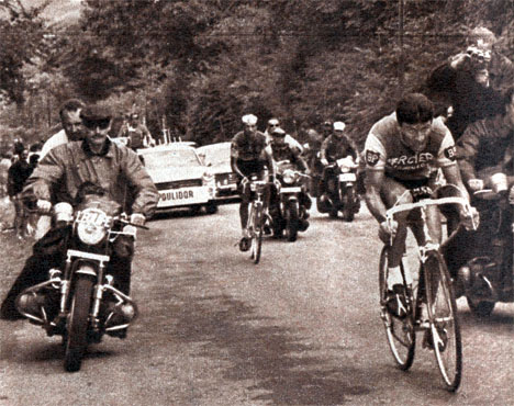 km 21.3 : Anquetil en 32'20", à 7" Poulidor, à 1'00" Altig, à 1'28" Gabica, à 1'41" Adorni, à 1'51" Bahamontes, à 1'53" Le Menn, à 1'58" Anglade, à 1'59" G. Desmet 1, à 2'08" Foucher... à 2'54" G. Groussard