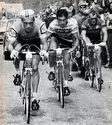 Rudi Altig, les frères Groussard et Derboven foncent vers Fribourg.