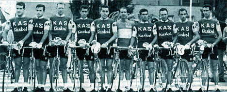 L'équipe Kas avec le champion d'Espagne Julio Jimenez.