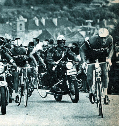 A l'avant du peloton les Molteni (Colombo, De Pra, Fezzardi) montent la garde.