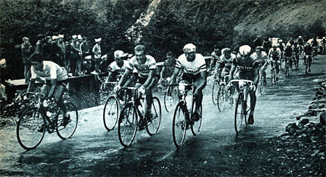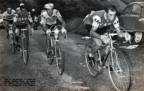 Dans l'ascension du col d'Ornon, le groupe de chasse : Galera, Jimenez, Uriona, Pingeon, Schutz (masqué).